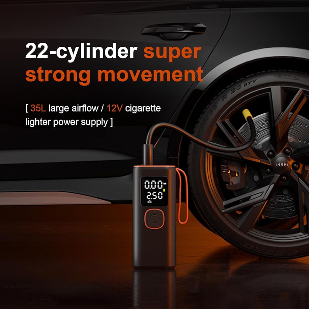 【نفخ سريع للغاية بالضغط] 22 أسطوانة من سبائك الطاقة، خرج طاقة قوي، مجهزة بـ 130 وات مع حماية حلقة مغناطيسية من النحاس، محرك مغناطيسي دائم سريع قابل للنفخ في حالات الطوارئ، الإخراج في الدقيقة يبدأ بحجم 35 لتر، حجم البداية مذهل بحيث يمكنك الخروج بسرعة من المشاكل، بدون قلق في حالات الطوارئ!