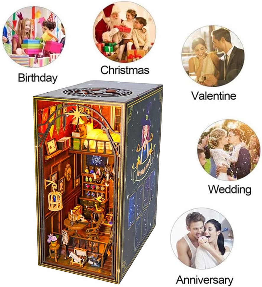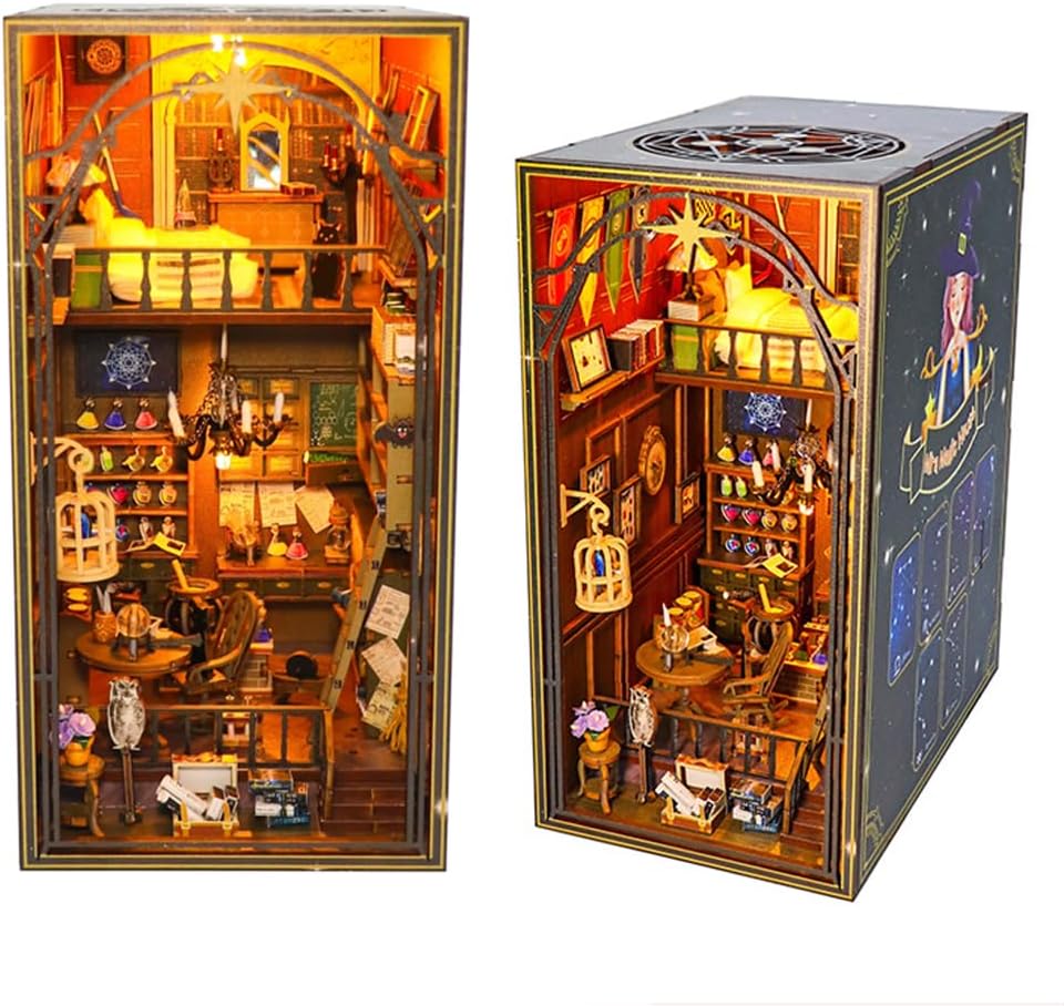 إدراج رف الكتب/ديكور المنزل: زاوية الكتاب عبارة عن مبنى قابل للتحصيل أو ديكور رف الكتب. كما أنها مجموعة يدوية مليئة بالتحديات، يجب أن تكون جميع المشاهد تقريبًا من صنعك. ديكور منزلي أنيق داخل رف الكتب أو على المكتب. تبدو رائعة في الظلام مع إضاءة الأضواء.
