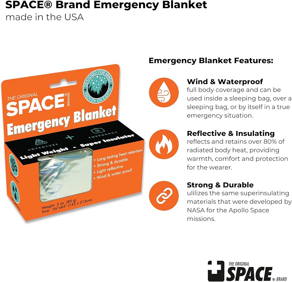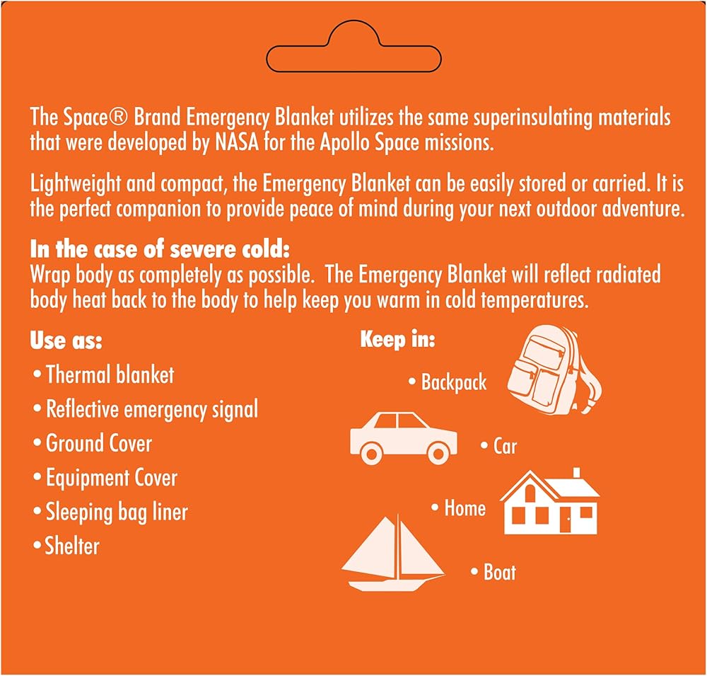 Lightweight and compact, the Space emergency blanket can be easily stored or carried. It is the perfect companion to provide peace of mind during your next adventure or to help prevent trauma shock in post-disaster situations.