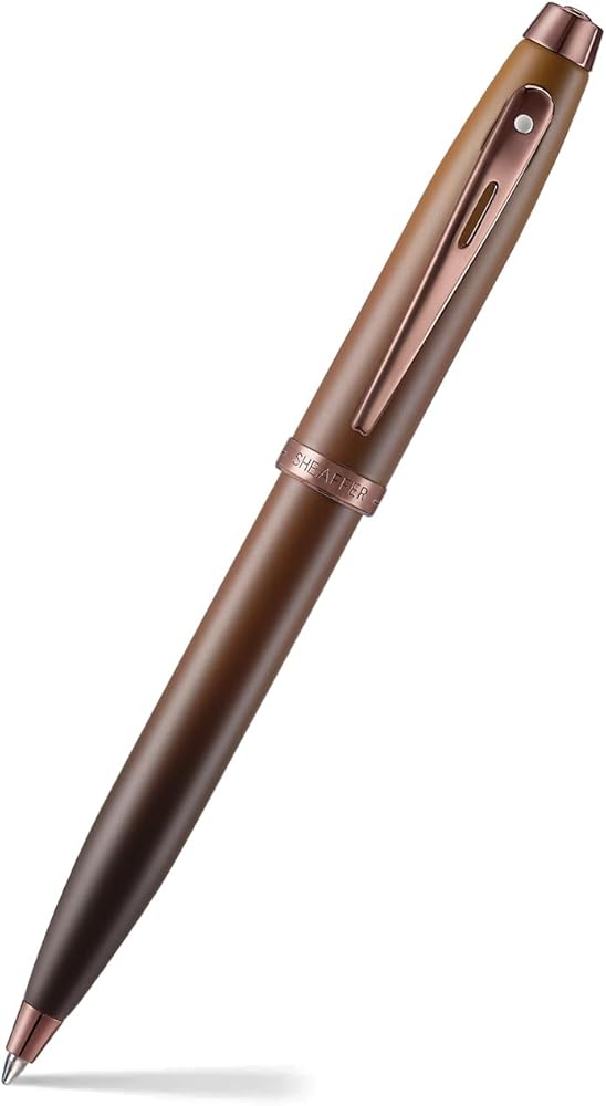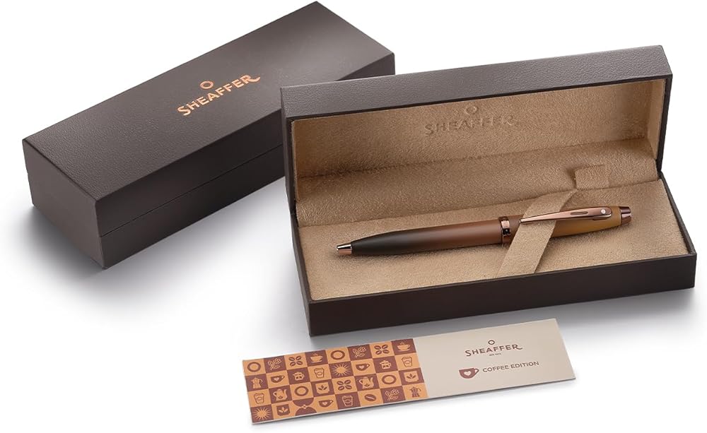 The Sheaffer 100 Series Coffee Edition, a classic writing instrument renowned for its timeless charm and top-notch quality. This exquisite pen comes in a lovely dark coffee brown colour, adorned with an elegant cup and heart insignia on the cap. Crafted with meticulous care, it meets the highest standards of craftsmanship, making it ideal for both professionals and enthusiasts who appreciate life's little luxuries.