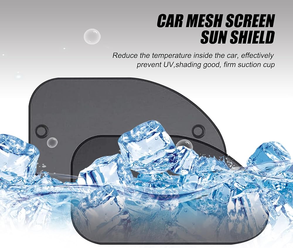 nodteem 2 PCS Car Front Side Window Glass Sunshade Mesh, 3D Photocatalyst Fine Mesh Breathable Sunshade Non-destructive Suction Cup Mounting Accessories, Suitable for Cars, Trucks and SUVs (Black)