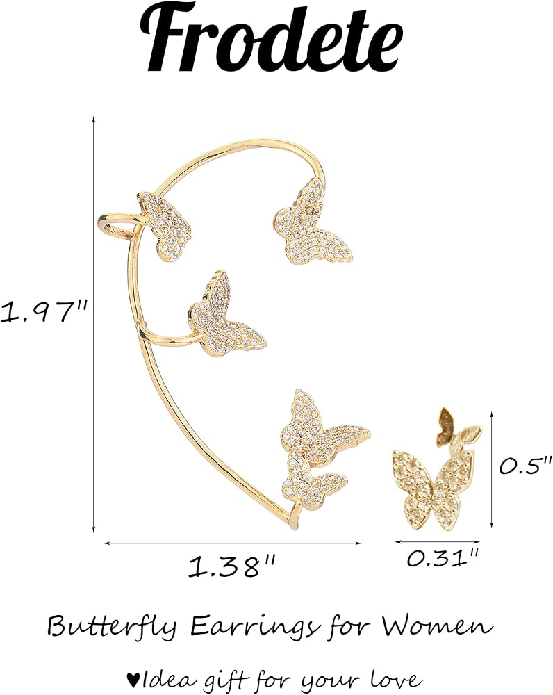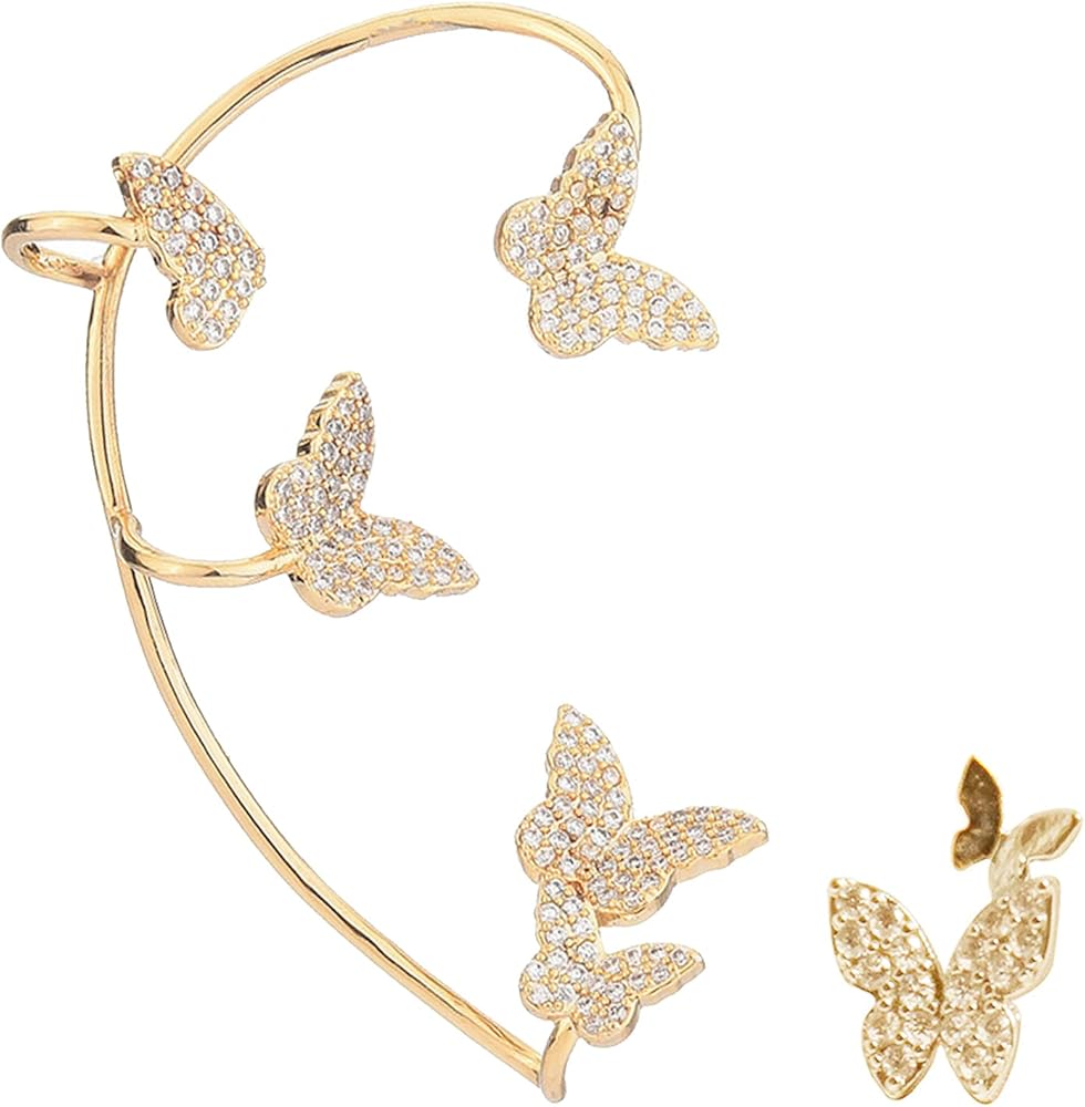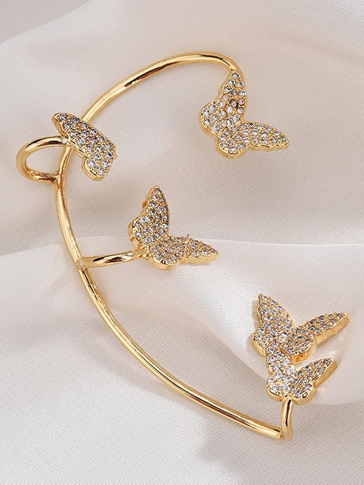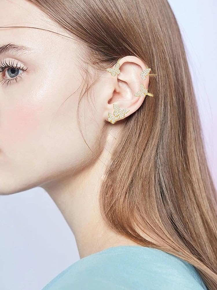 أساور أذن على شكل فراشة للنساء غير المثقوبة: أقراط أنيقة من حجر الراين مصنوعة من سبيكة معدنية، وصناعة متقنة، ومصقولة يدويًا، ومستديرة وناعمة، لضمان بقائها ثابتة ومصقولة. لا تقلق بشأن إيذاء أذنيك.