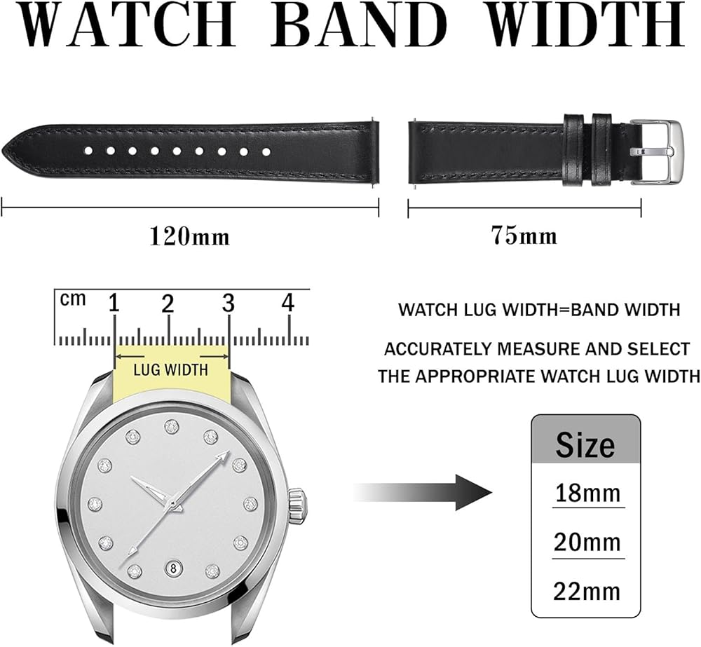 الأحجام المتوفرة: متوفرة بثلاثة أحجام متعددة (18 ملم، 20 ملم، و22 ملم)، وهي متوافقة مع مجموعة واسعة من موديلات الساعات. سواء كان لديك ساعة رسمية كلاسيكية أو ساعة رياضية، ستجد الحجم الذي يناسبك تمامًا.