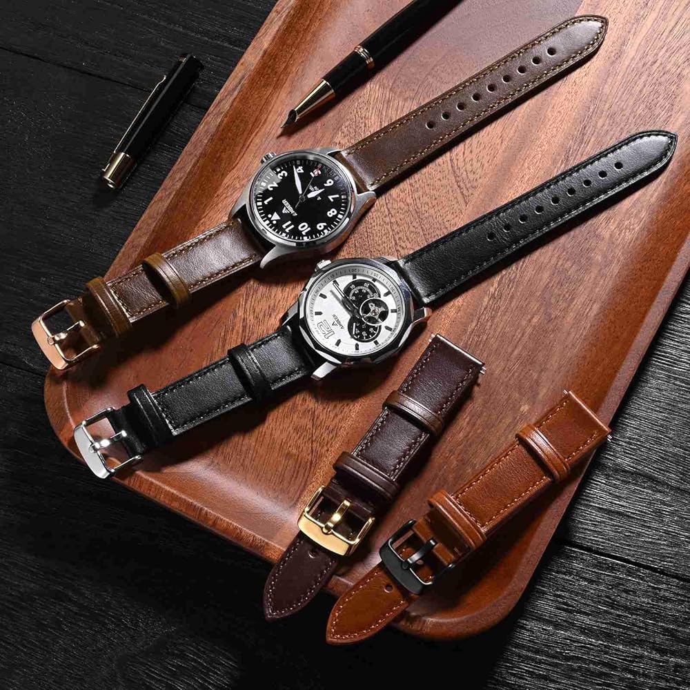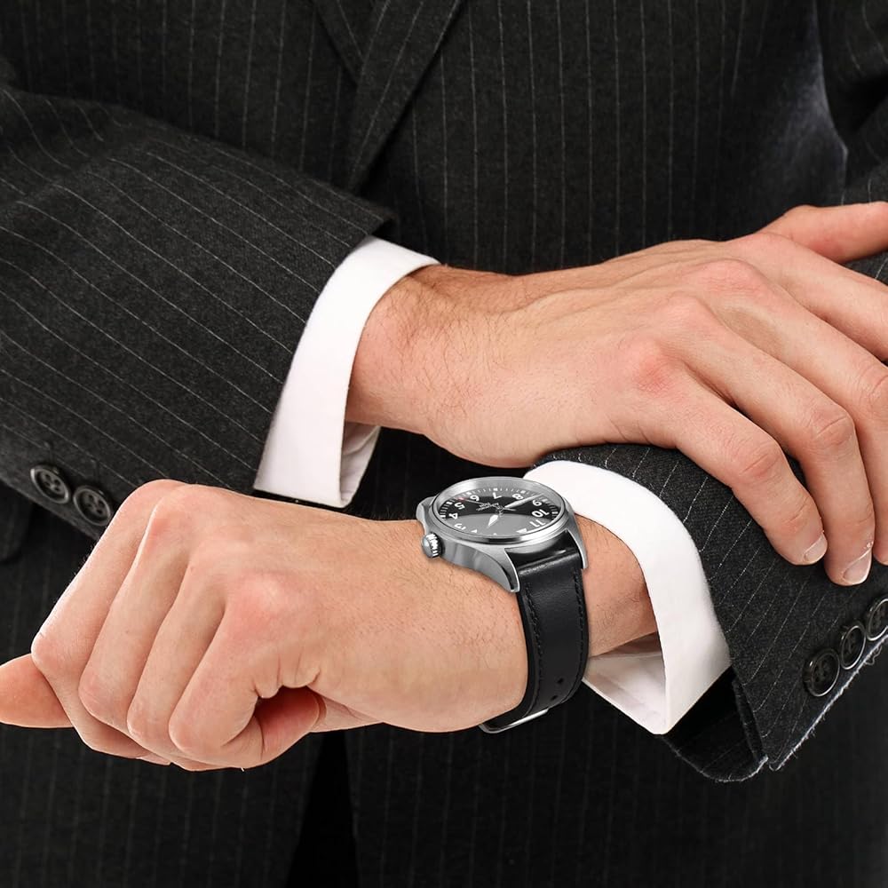 جلد إيطالي أصلي: مصنوع من جلد إيطالي فاخر، معروف بجودته الفائقة وملمسه الفاخر. إنها تتقدم بشكل جميل مع مرور الوقت، مما يزيد من مظهر الساعة.