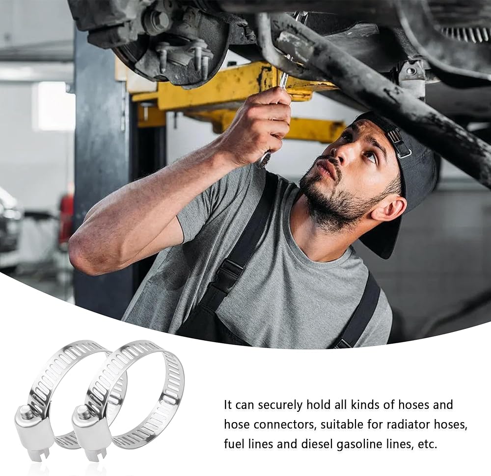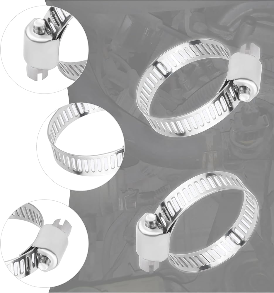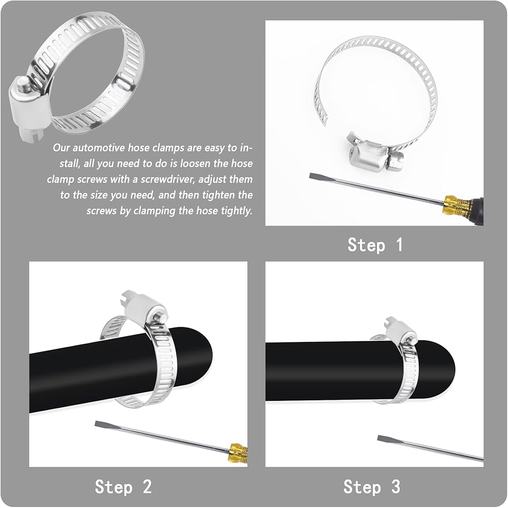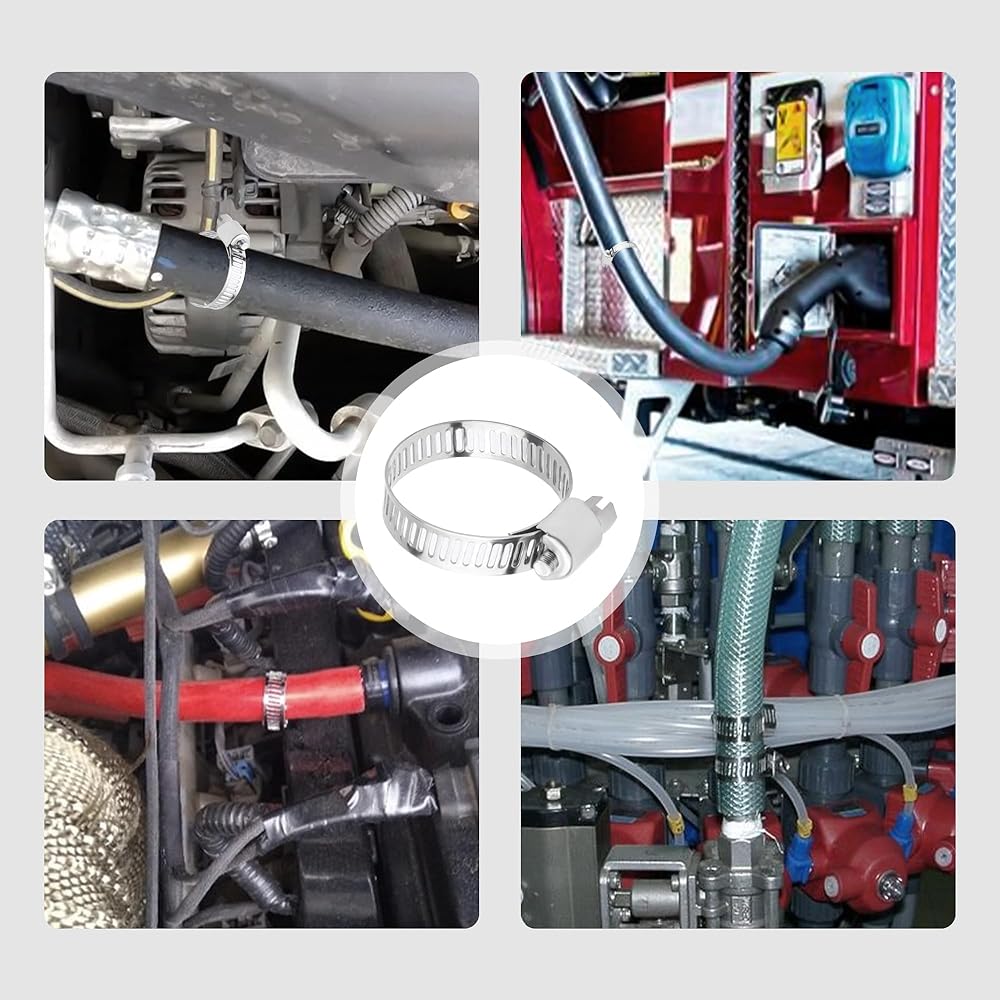 • 🚗16-25mm Hose Clamp Kit: This hose clamp is suitable for hoses with an outside diameter of 5/8 inch to 1 inch (16-25mm). It can securely hold all kinds of hoses and hose connectors, suitable for radiator hoses, fuel lines and diesel gasoline lines, etc. And it can be used in a wide range of applications such as automotive, marine and plumbing.