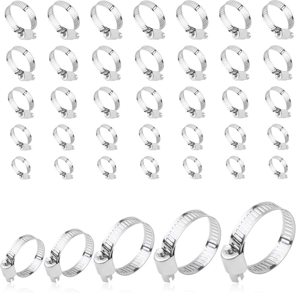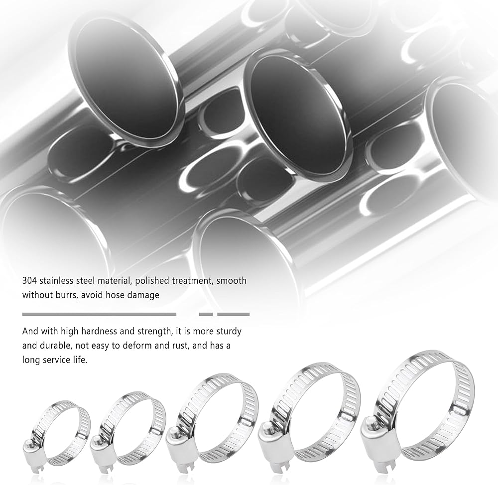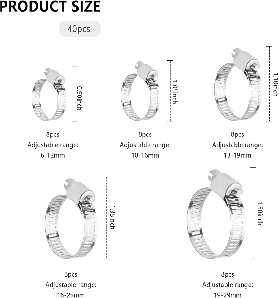• 🚗Package Included: You will receive 30pcs of stainless steel hose clamps from 5/8 inch to 1 inch (16-25mm). The quantity is sufficient to meet your daily use, you can replace them at any time. Please check the outer diameter of the pipe carefully before you buy our hose clamps to avoid the product can not be used after you receive it.