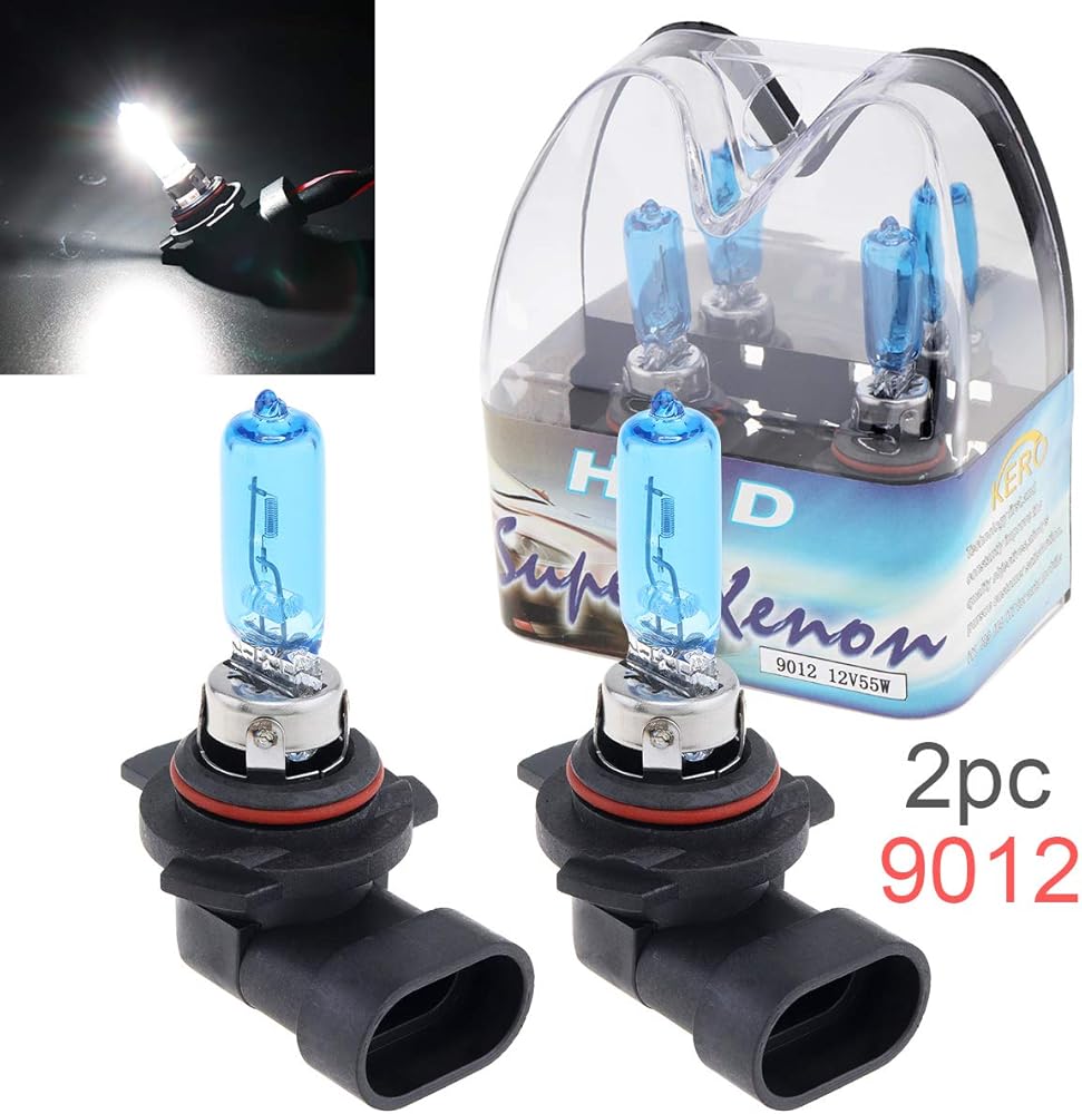 9012 مصباح هالوجين، 12 فولت 55 وات 6000 كيلو ضوء أبيض فائق السطوع مصباح هالوجين للسيارة مصباح ضباب أمامي تلقائي، حزمة من 2