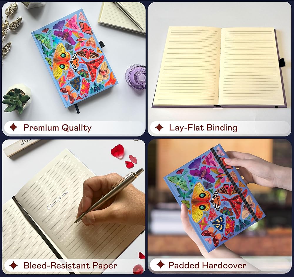 هيكل قوي ورباط مسطح: مع غطاء خارجي قوي ومبطن، تتميز مجلاتنا بأنها ناعمة الملمس ولكنها متينة للغاية ومتعددة الاستخدامات، ومثالية لأخذها معك أثناء التنقل. والأهم من ذلك، أنه يمكن فتحها لوضعها بشكل مسطح، مما يتيح مساحة كبيرة للكتابة فيها