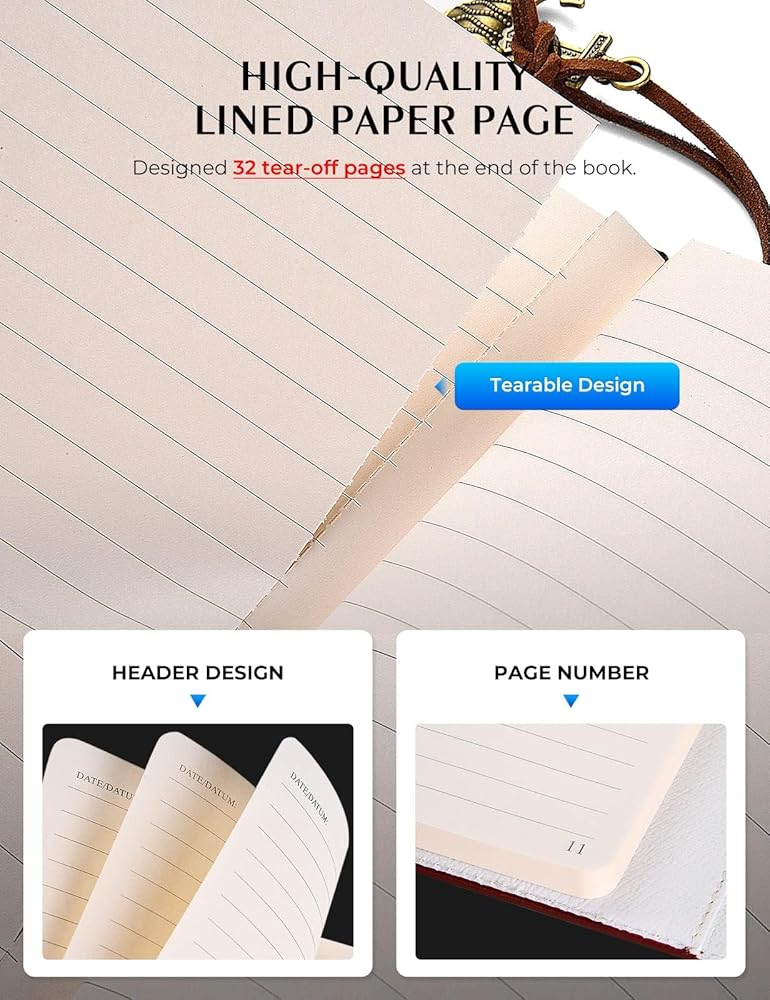 【لمسة نهائية من الورق عالي الجودة】ورق عالي الجودة بلمسة نهائية ناعمة، مما يسمح لك بالكتابة على كلا الجانبين بسهولة. لا يوجد نزيف أو ظلال أو ريش مع مجلة الكتابة الكلاسيكية المبطنة القابلة لإعادة التعبئة للنساء. يمكن لتصميم الصفحة الداخلية المكون من 192 صفحة أن يلهمك ويساعدك على تسجيل أي لحظة رائعة.
