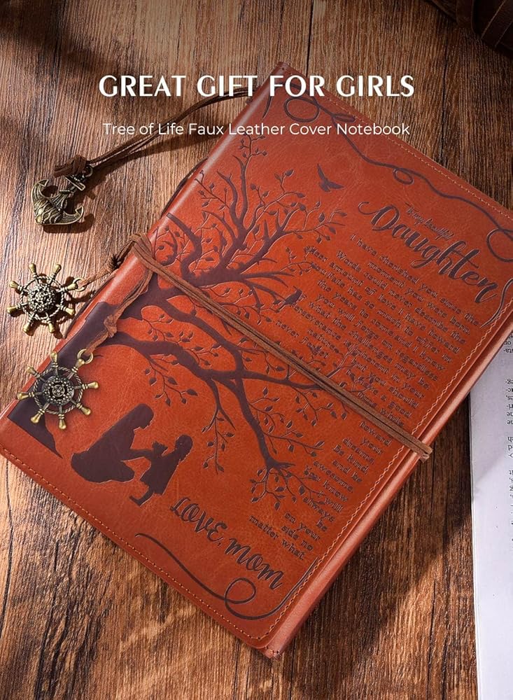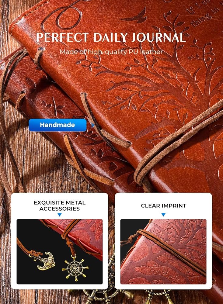 【دفتر ملاحظات قابل لإعادة الاستخدام مصمم بشكل فريد】مجلة مع غطاء منقوش على شكل شجرة الحياة المذهلة وحزام جلدي حول الحزام مما يبقي دفتر يومياتك مغلقًا. مجلة تحتوي على جيبين داخليين لتنظيم التذاكر أو الإيصالات أو المذكرات الصغيرة.
