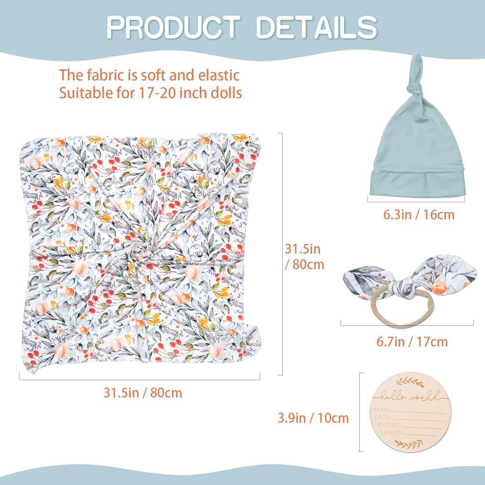تولد من جديد دمى الطفل الملابس قماط بطانية مجموعة تناسب 17-22 بوصة تولد من جديد دمى فتاة وهمية ملابس الطفل الملحقات 4 قطع بطانية صديقة للبشرة