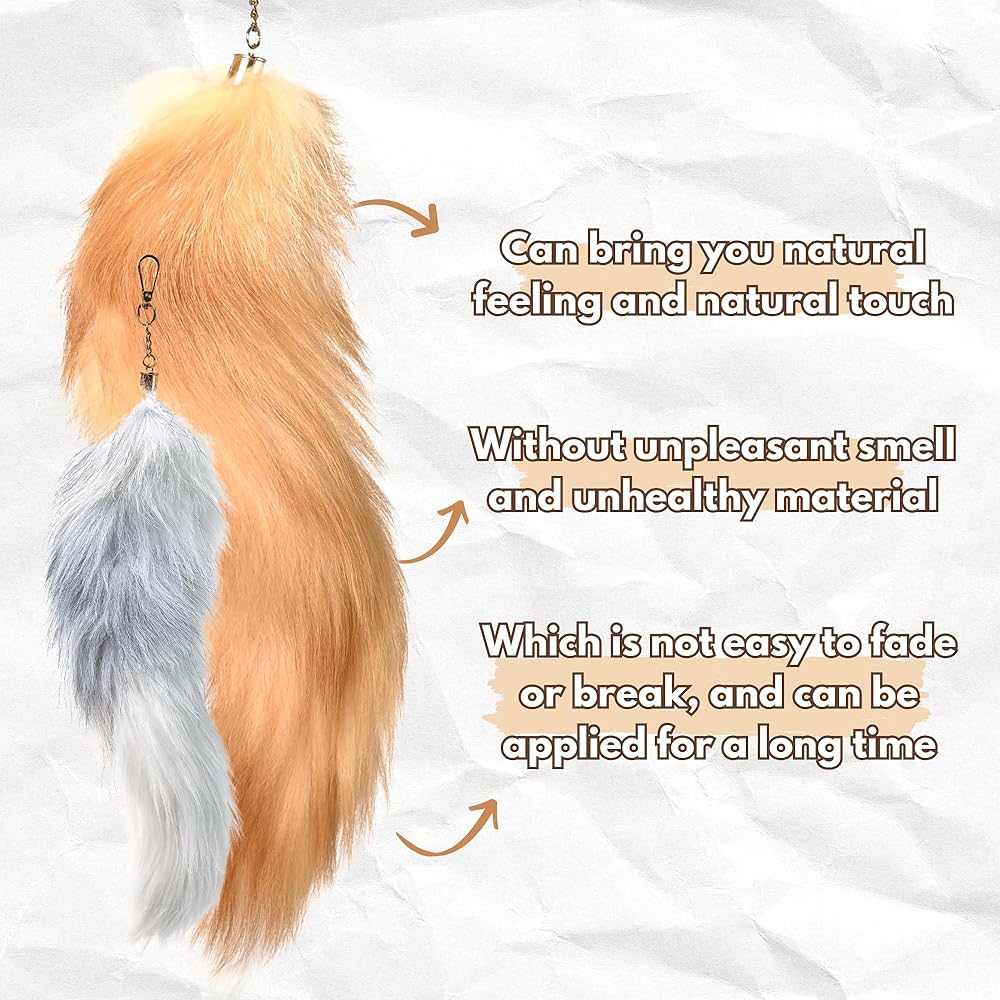 • ☘️ Wide Range of Use: Our faux fur tail is used for stylish keychain tail, fashion ornament, handbag accessories, tail cosplay, costume, photo prop or even as a lovely pet toy. Tail isn't easy to slip or fall off.