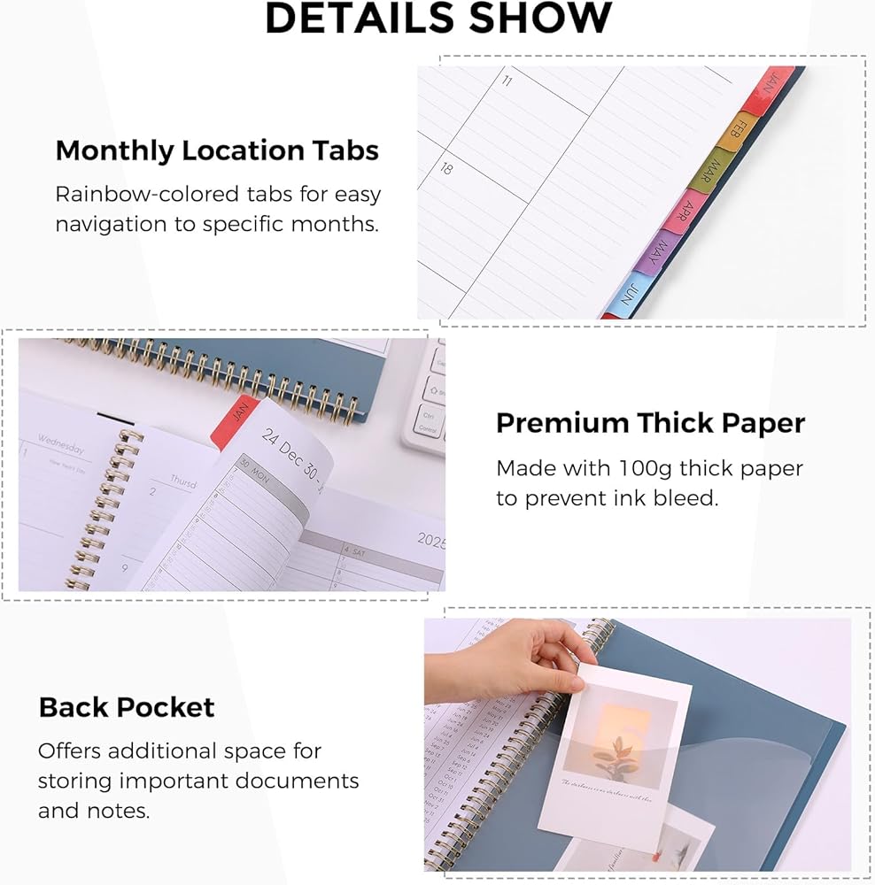 جودة ورق ممتازة: مصنوع من ورق سميك عالي الجودة لمنع نزيف الحبر، يضمن كتاب الجدول الزمني 2025 هذا تجربة كتابة سلسة. إنها أداة أساسية للطلاب والمدرسين والمهنيين العاملين ذوي المواعيد اليومية وكل من يقدر التنظيم