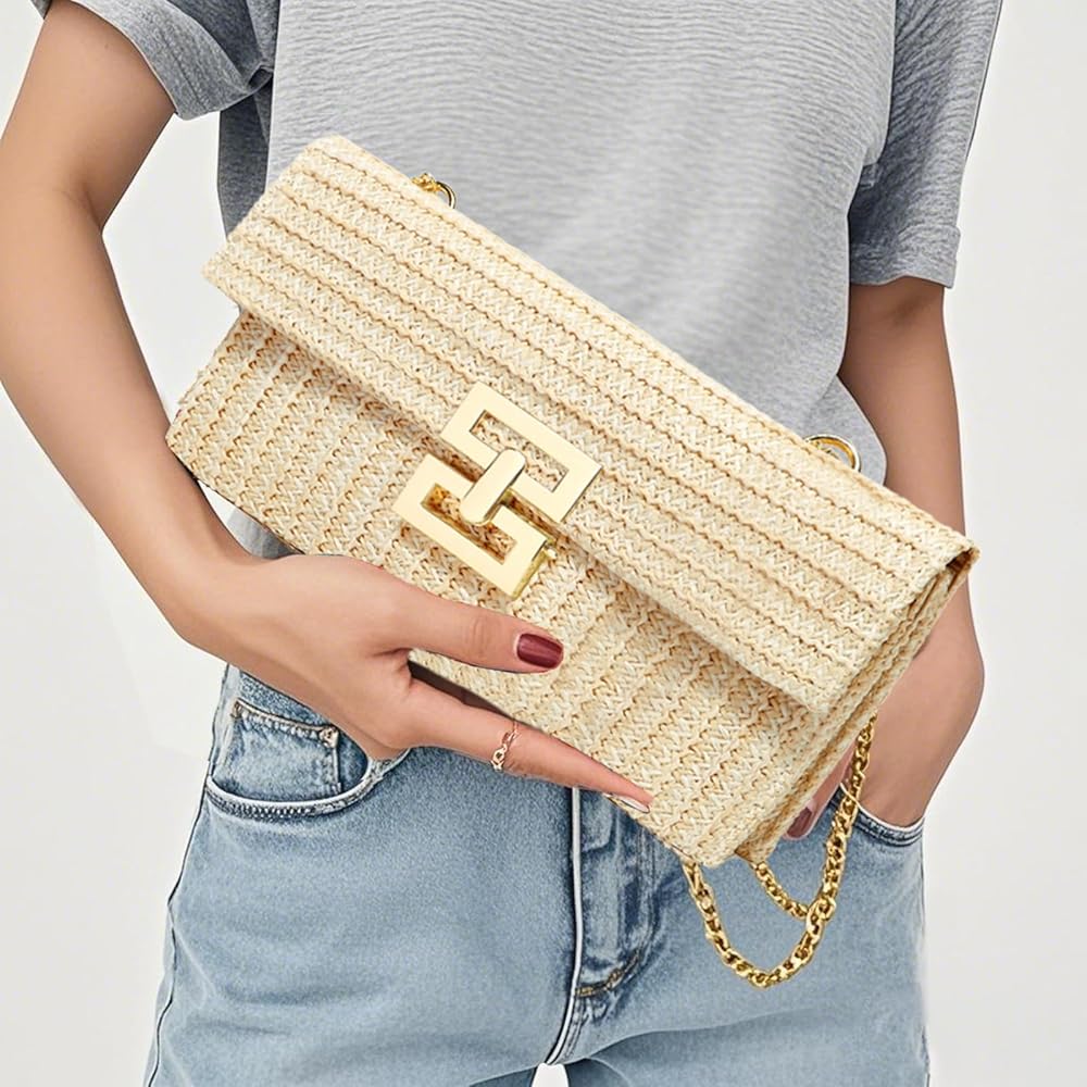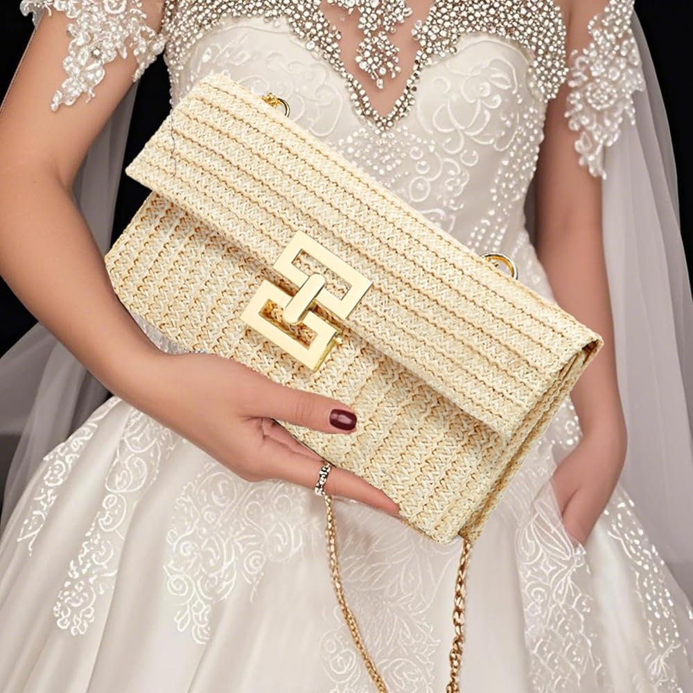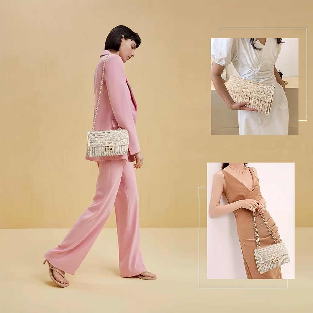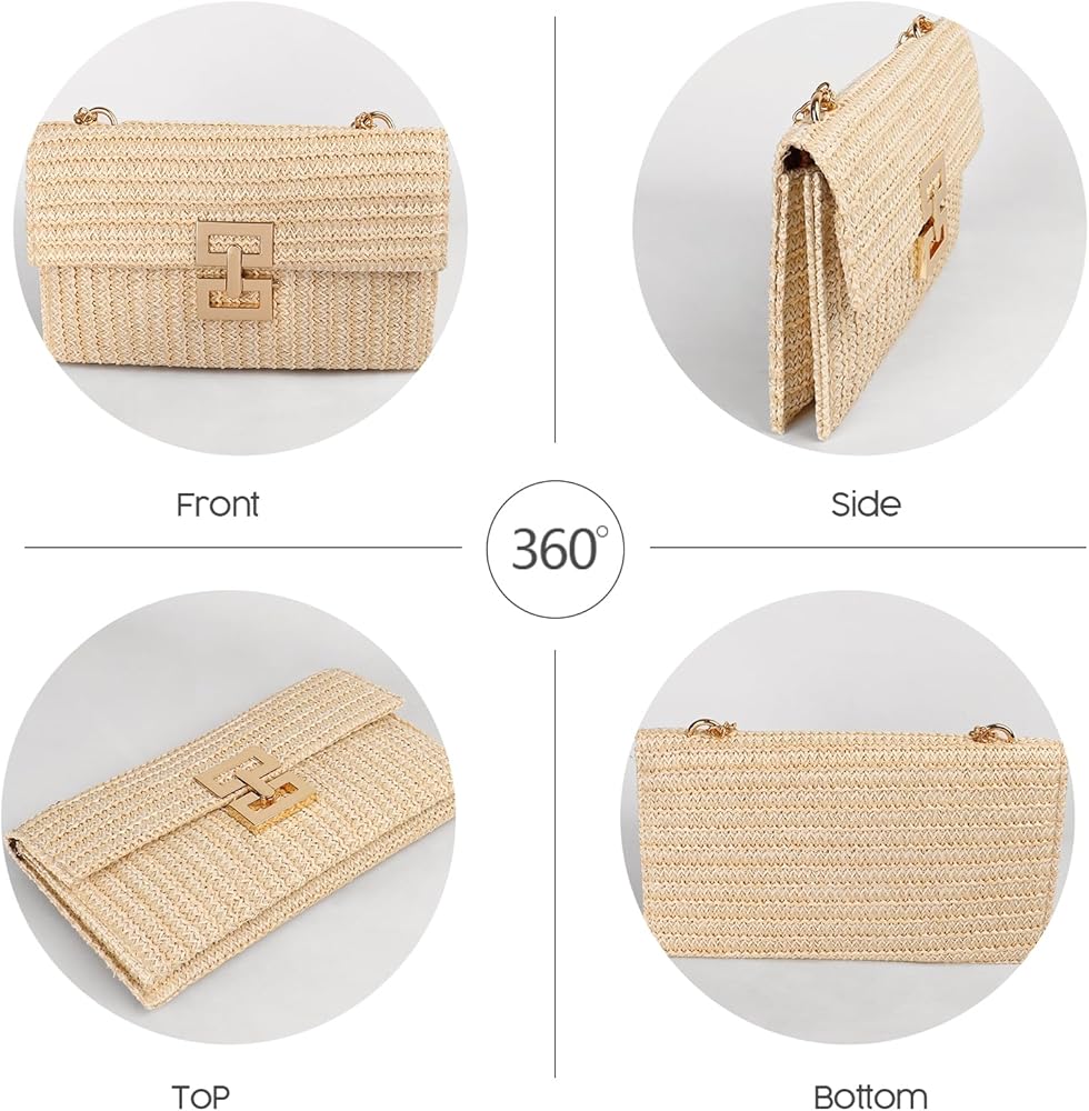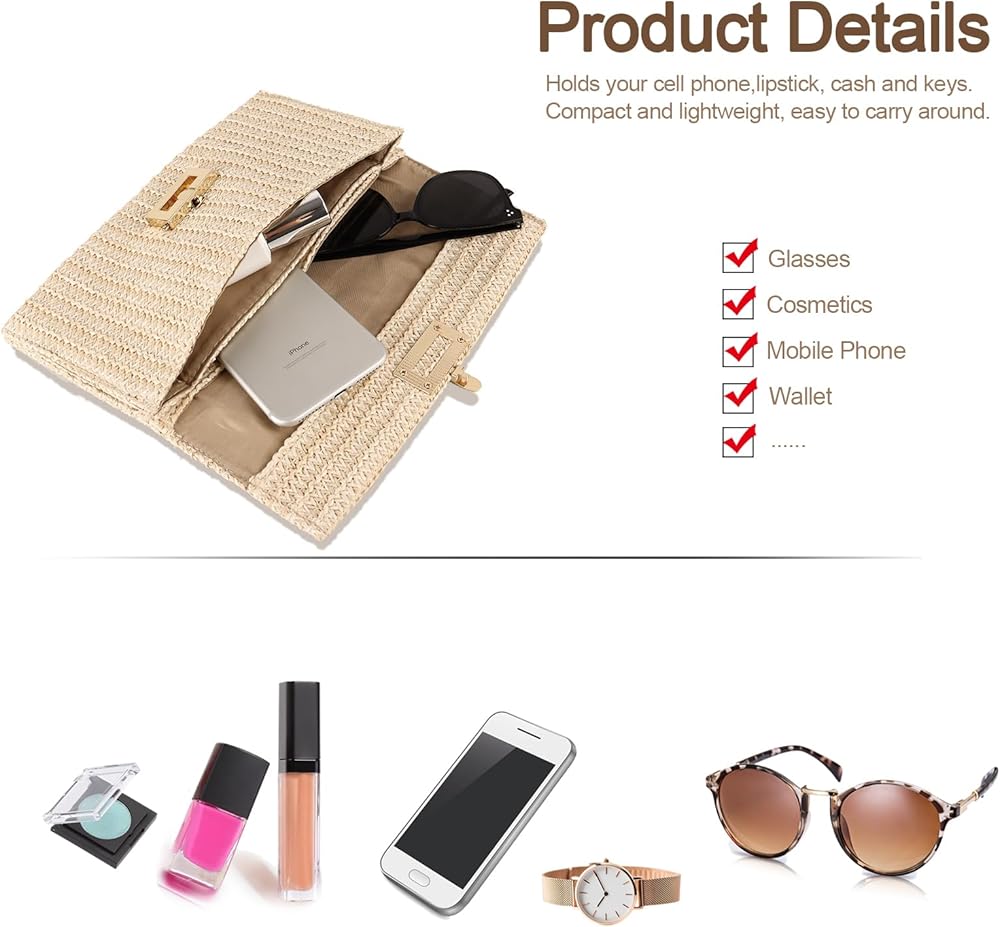 صغيرة وخفيفة الوزن: هذه المحفظة الصيفية ذات القش مناسبة للنساء عند السفر أو حضور حفلة، ويمكنها حمل ضرورياتك اليومية للسفر، بما في ذلك الهاتف الخلوي ومستحضرات التجميل والساعة والمفاتيح وكنز الشحن وما إلى ذلك، صغيرة وخفيفة الوزن وسهلة للحمل