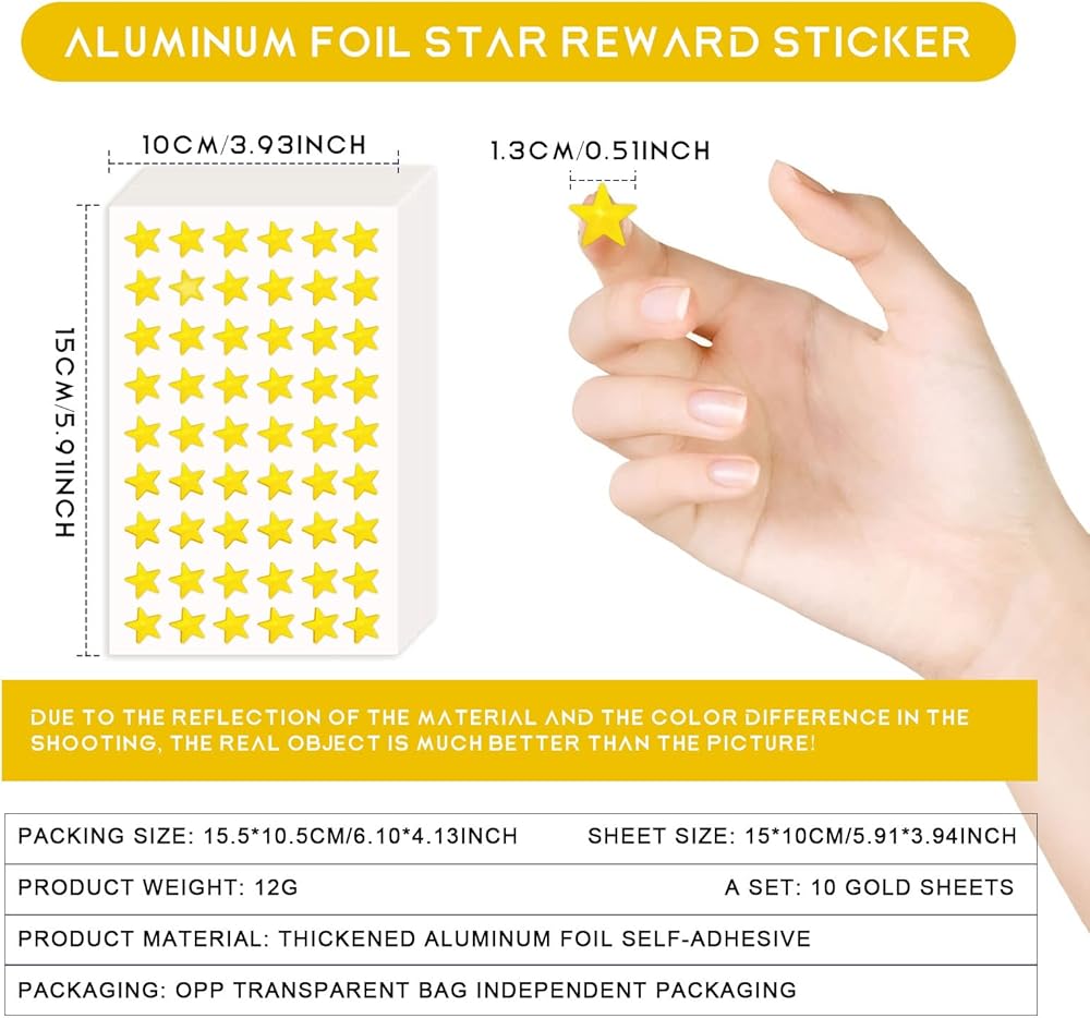 540 ملصقًا للنجوم: تحتوي كل عبوة على 540 ملصقًا للنجوم الصغيرة الذهبية، و10 أوراق في كل عبوة؛ تلبي ملصقات النجوم ذات الكمية الكبيرة احتياجاتك المتنوعة.