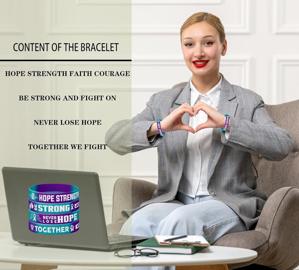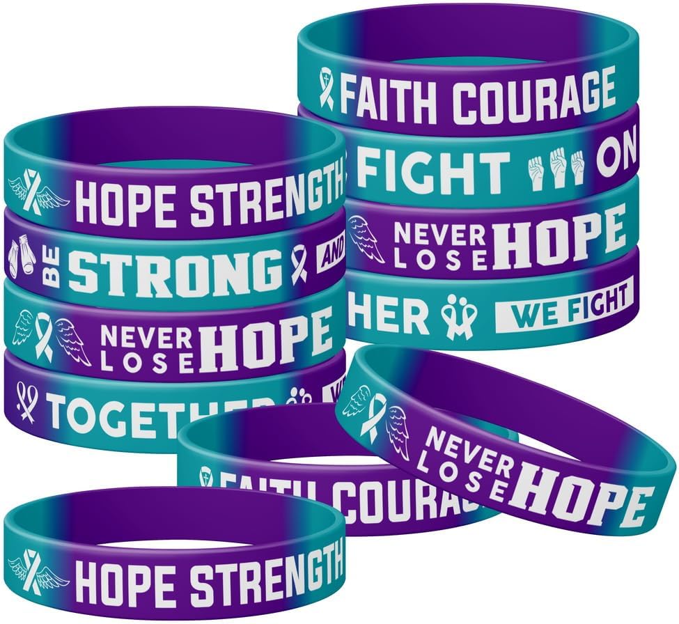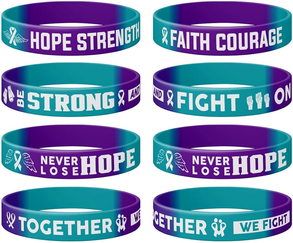 4. A Teal and Purple Ribbon Represents Support and Awareness for Suicide Prevention, Wristbands in Teal and Purple to Support Your Loved One Struggling with Suicidal Thoughts; Teal and Purple silicone wristbands to honor and remember your loved one lost to suicide