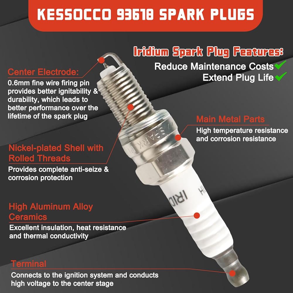 ✅قابس إشعال ممتاز 93618: شمعات الإشعال هذه مصنوعة من مادة إيريديوم عالية الجودة، وهي أقوى 6 مرات وأقوى 8 مرات من البلاتين، ولها نقطة ذوبان أعلى بـ 700 درجة، وتدوم لفترة أطول بنسبة 25% من شمعات الإشعال البلاتينية المشابهة. تحتوي شمعات الإشعال الإيريديوم على أقطاب كهربائية رفيعة للغاية توفر كفاءة اشتعال عالية مع الحفاظ على خصائص تآكل ممتازة.