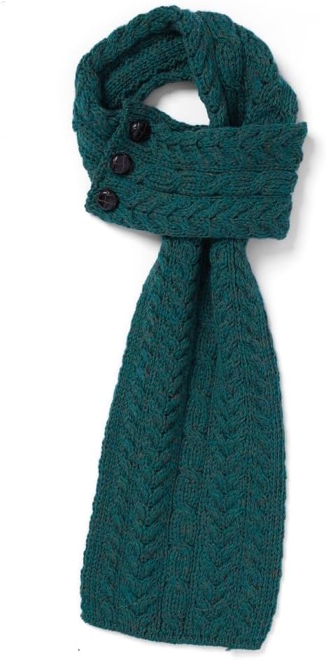 Elevate your style with this exquisite Three Button Merino Wool Scarf for Women. Crafted from high-quality Merino wool, this scarf offers unparalleled warmth and comfort, making it an ideal accessory for chilly days. The elegant three-button design adds a touch of sophistication, while the beautiful traditional Aran stitching lends a timeless appeal. Versatile and fashionable, this scarf effortlessly complements any outfit. Available in various colors to suit your personal style, it measures 31 x 8 inches, providing ample coverage and drape. Indulge in the luxurious softness of Merino wool and elevate your wardrobe with this must-have scarf.