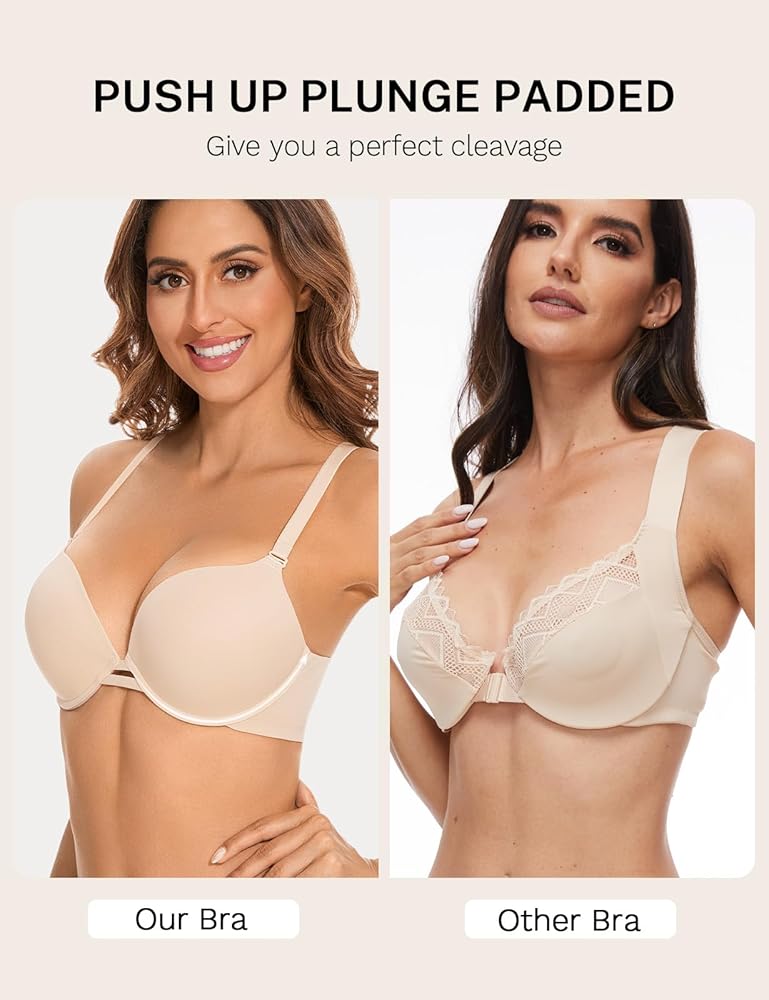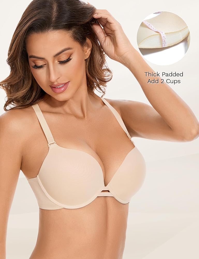 - حمالة الصدر المبطنة: تم تصميم مبطن سميك لجمع الثديين معًا، مما يخلق تأثير رفع طبيعي ويعزز شكل الانقسام.