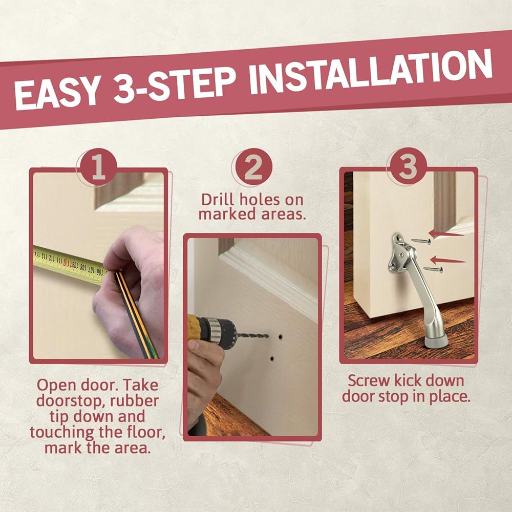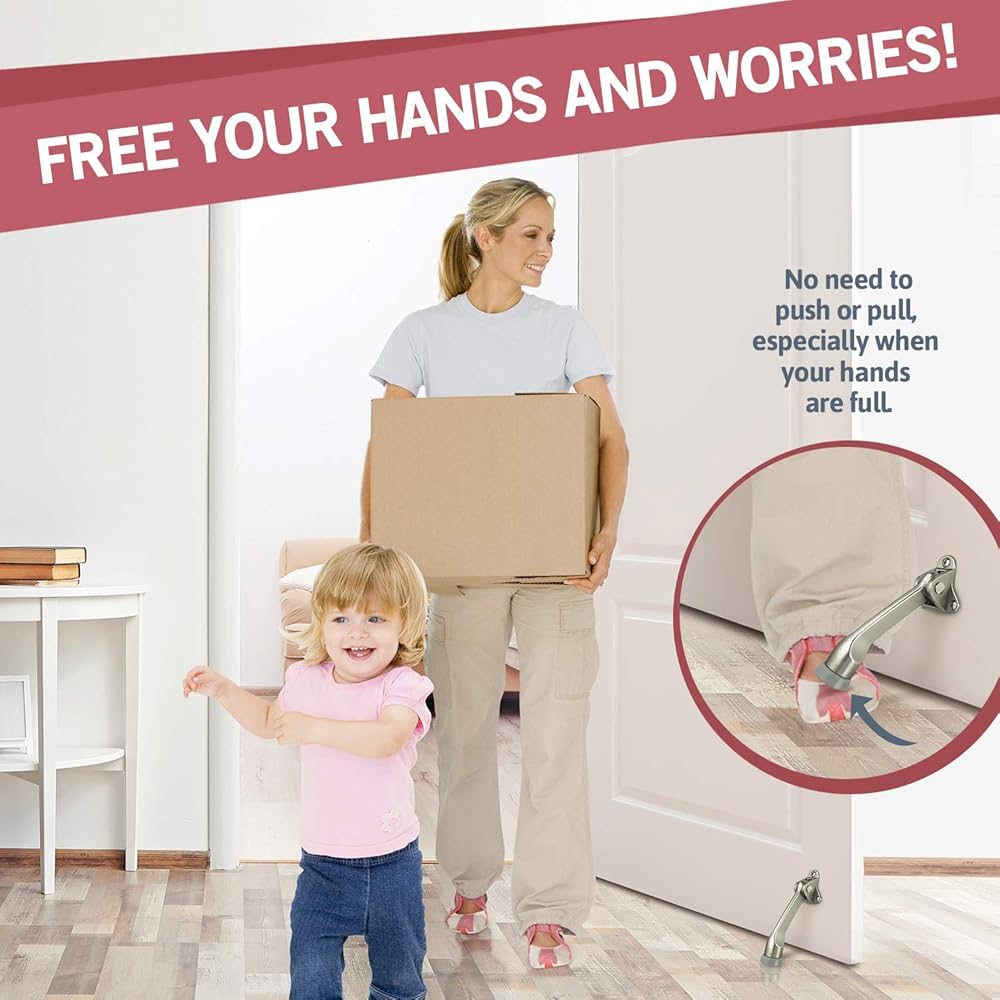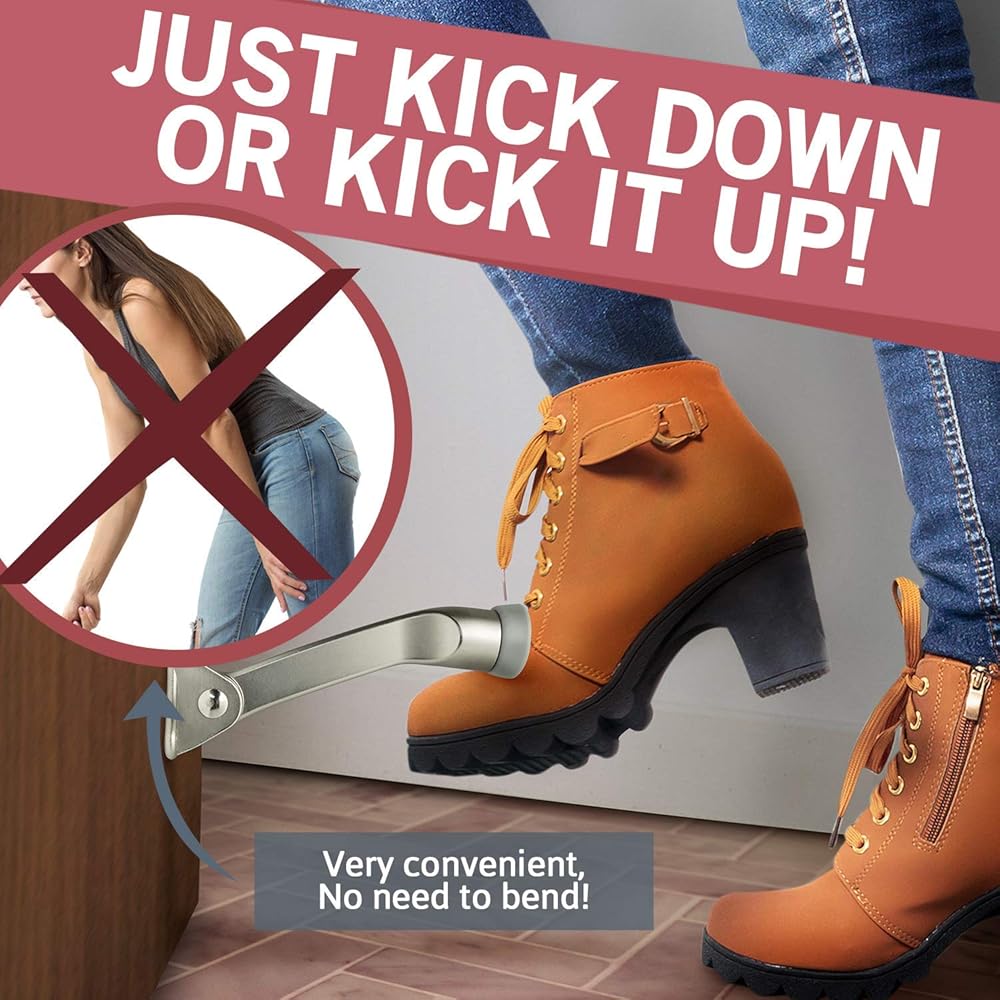 لا مزيد من المتاعب - قفل سدادة باب ممتاز في الأعلى للسماح للباب بالتأرجح بحرية. لا حاجة للانحناء للأعلى أو للأسفل - توقف الباب بلمسة واحدة يساعدك على التمتع بأسلوب حياة أكثر ملاءمة. فقط اركلها أو اركلها بقدمك وسوف تعمل بمثابة إسفين للباب.