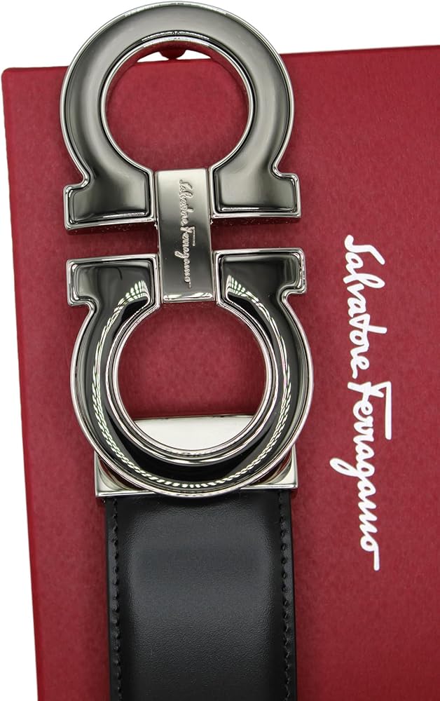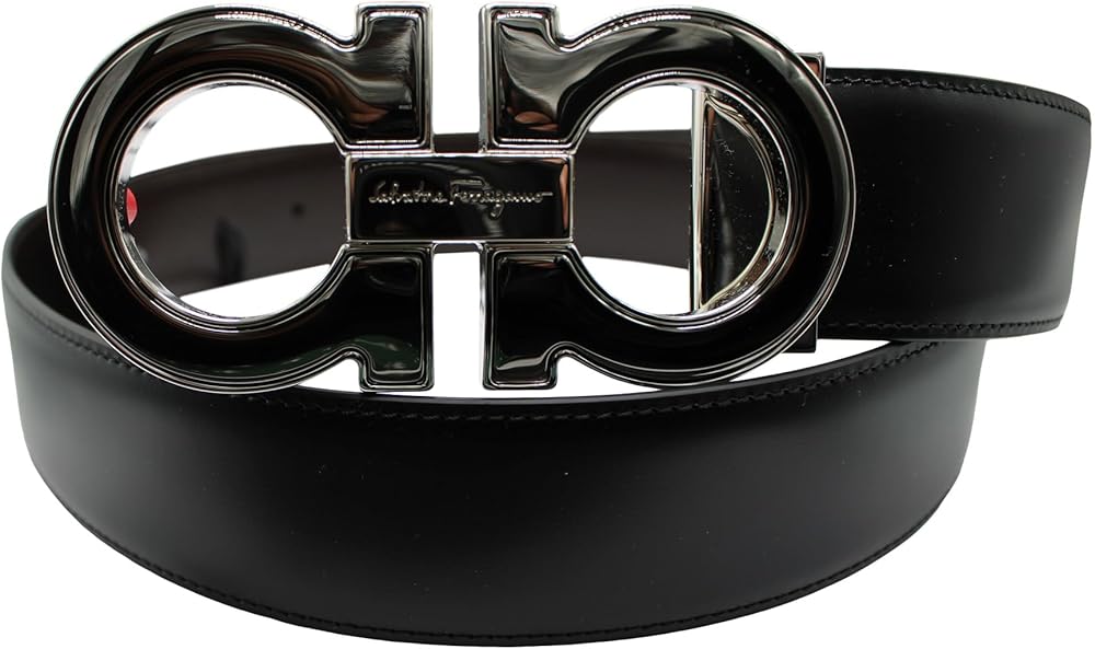سلفاتوري فيراغامو ذو وجهين قابل للتعديل باللون الأسود/البني مع حزام جانسيني بلونين من المعدن