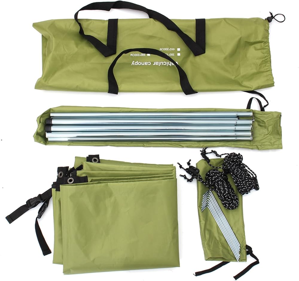سهلة التركيب، خفيفة الوزن: يمكن لشخص واحد أن يبنيها بسهولة شديدة. يمكن إعداد المظلة بسهولة عن طريق ربط القوائم وفقًا للارتفاع المطلوب وتثبيت القماش على مشبك اليقطين أو رف الأمتعة في السيارة. الوزن فقط 3.85 كجم، الحجم المطوي فقط 22.8x6.7x3.15 بوصة، سهل الحمل، سهل التخزين، لن يأخذ مساحة كبيرة