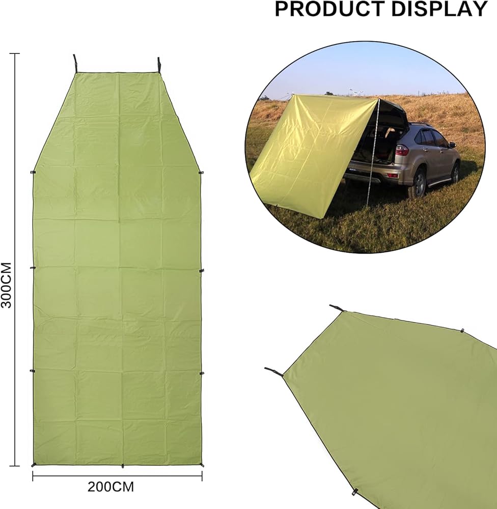 مقاومة للرياح والماء: مصنوعة من قماش أكسفورد 210D المطلي بالفضة والذي يحجب الشمس بينما يكون مقاومًا للماء. تأتي خيمة التخييم هذه مع قائمتين وحبلين مقاومين للرياح وثمانية أوتاد ثابتة لضمان ثبات مظلة التخييم.