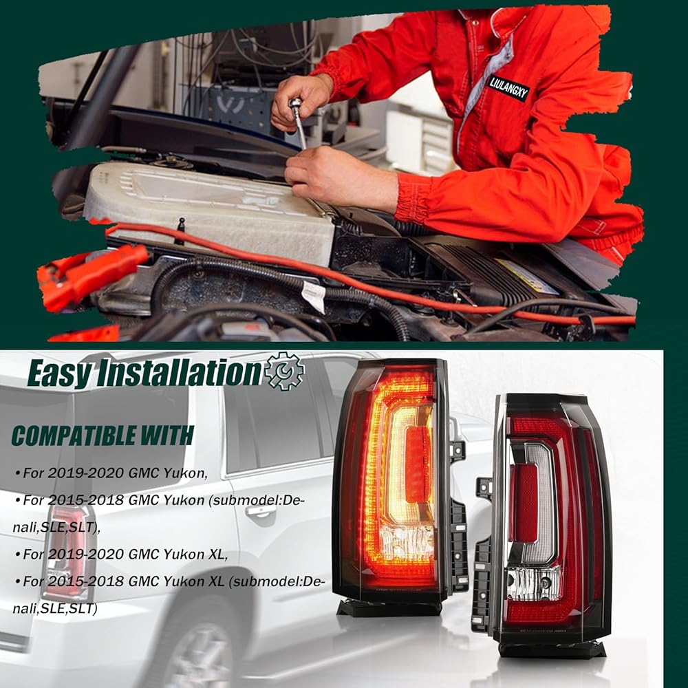 【النماذج القابلة للتطبيق: المصابيح الخلفية متوافقة مع 2019-2020 جي إم سي يوكون، 2015-2018 جي إم سي يوكون (دينالي، SLE، SLT)، 2019-2020 جي إم سي يوكون XL، 2015-2018 جي إم سي يوكون XL (دينالي، SLE، SLT)