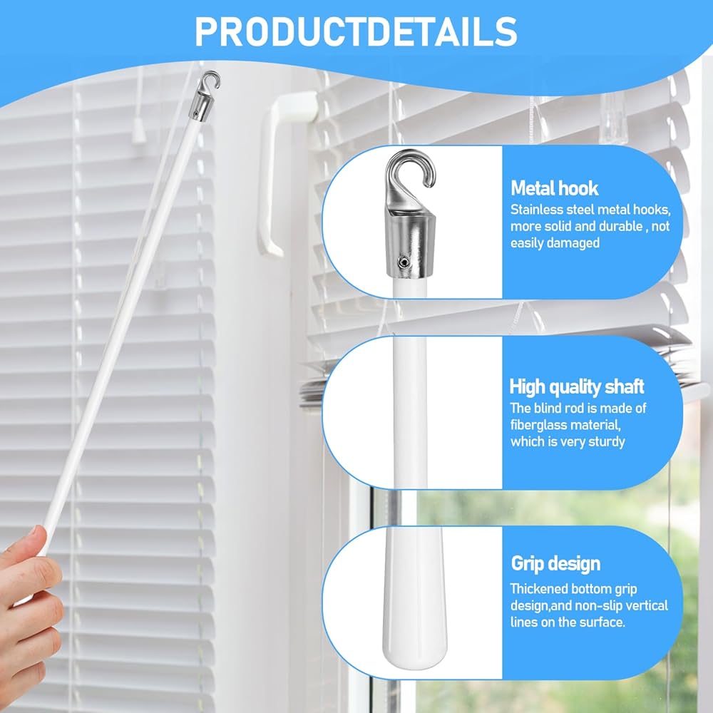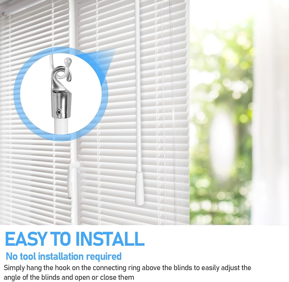 【Easy to lnstall】: No tool installation, just attach the hook to the connecting ring above the blind, and you can easily adjust the angle of the blinds, open or close.