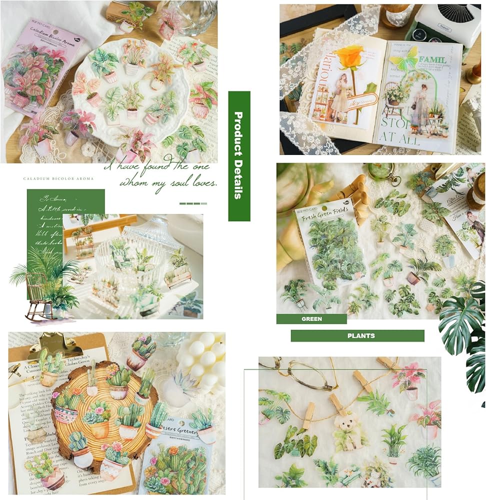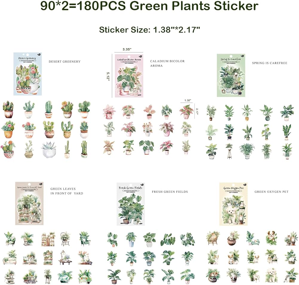 【Including】6Series 180PCS vintage plants leaves flowers cactus stickers. Easy to use, tear off the background before using and decorate crafts.