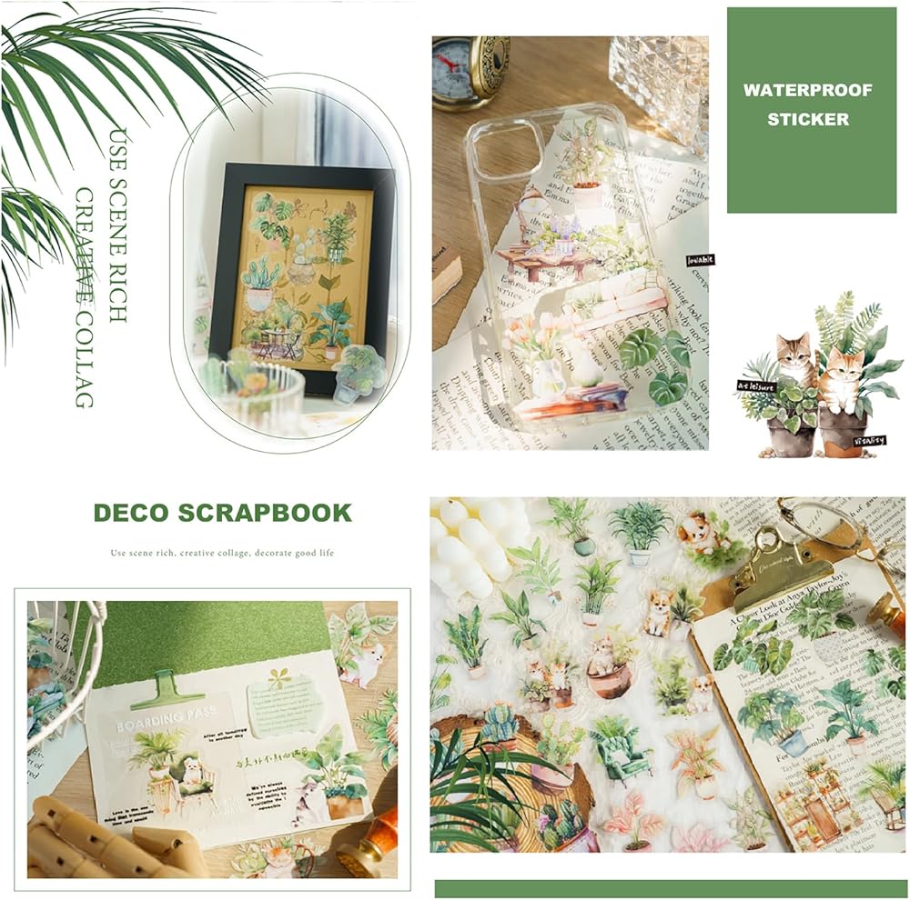 MAXLEAF 180 قطعة من ملصقات الزهور العتيقة ونباتات الصبار والحيوانات الأليفة من أجل المجلات الفنية DIY وألبوم مخطط القصاصات وديكورات الصور، هدايا لمحبي المجلات
