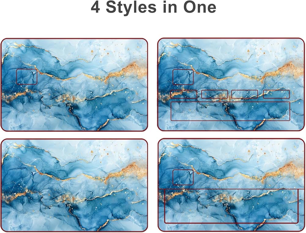 Four Styles in One: The size of credit cards skin is about 7.3 x 5.4 inch, four style decals including half cover, full cover, full cover with chip, full cover with window