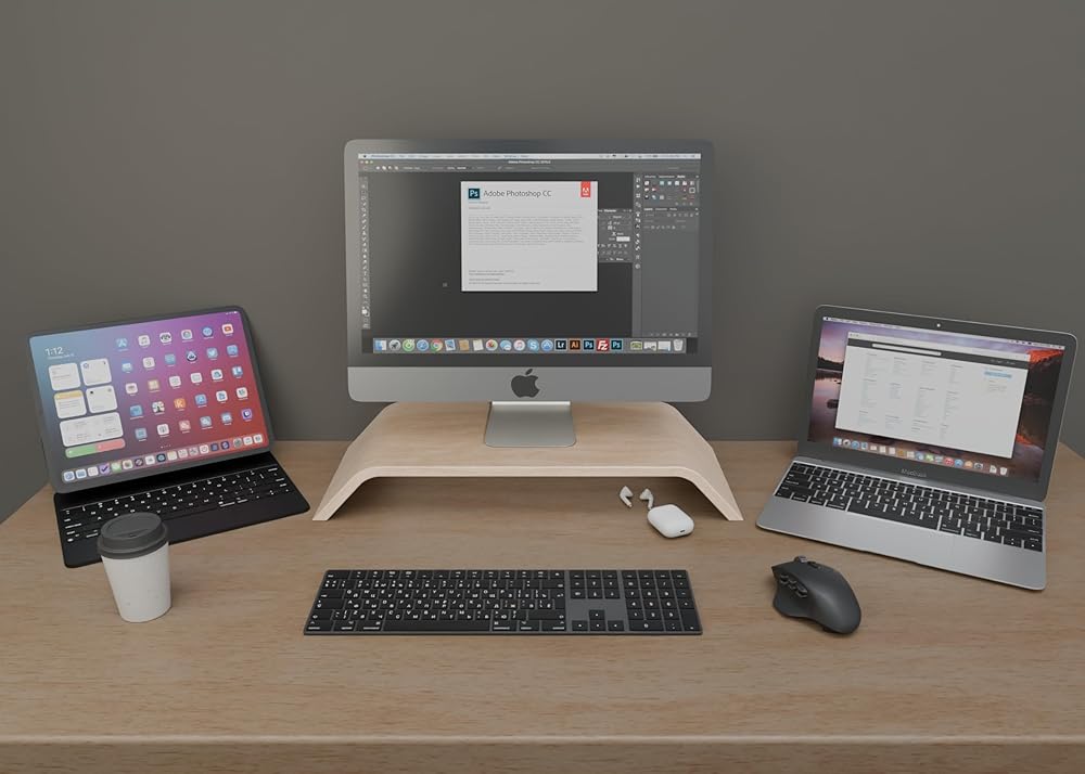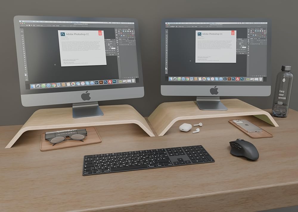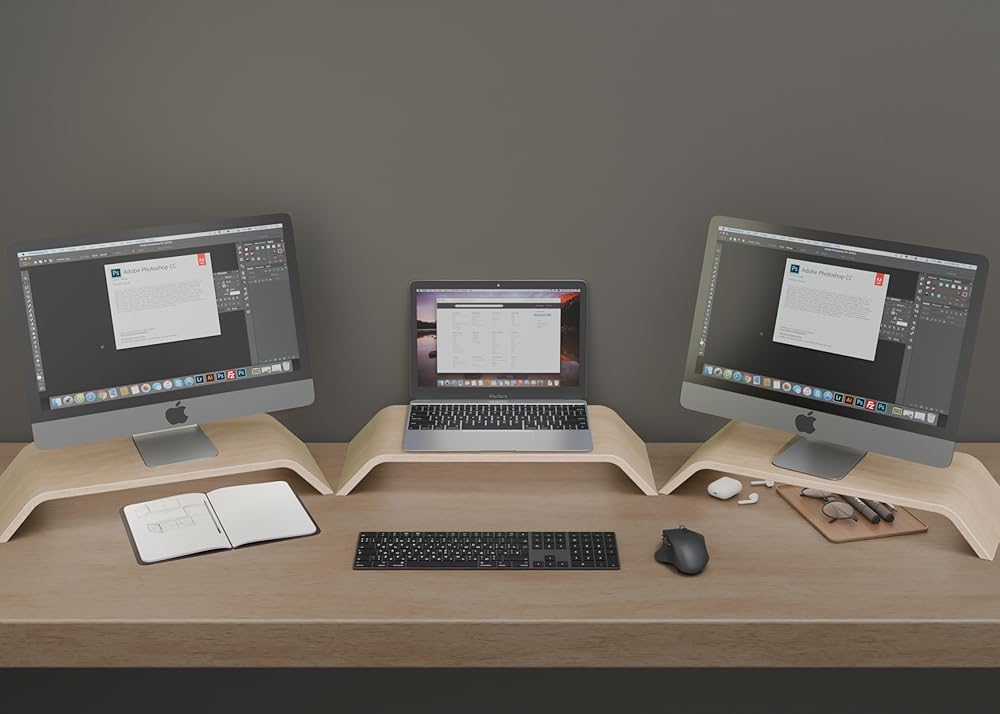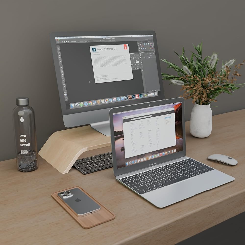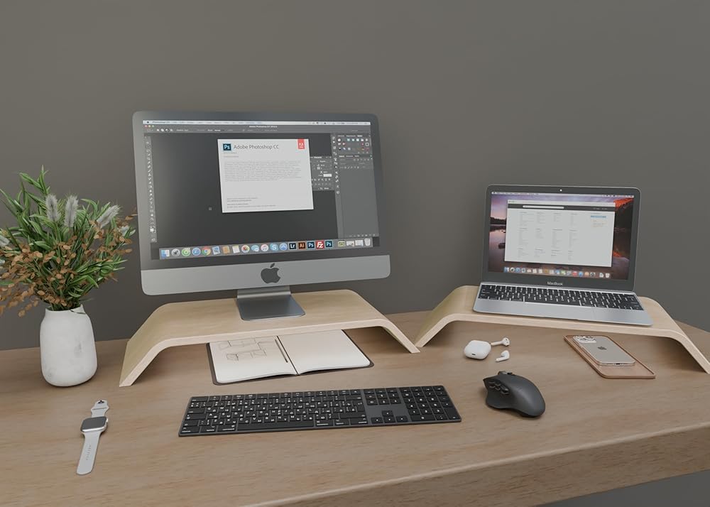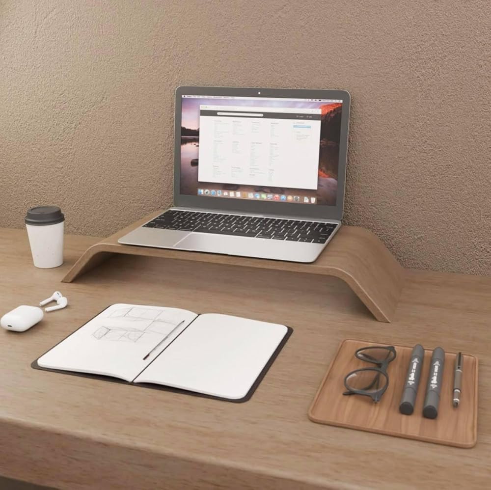 تصميم فاخر راقي: ارفع مساحة العمل الخاصة بك مع حامل الشاشة الخشبي الأنيق هذا، والمصنوع بجمال عصري يكمل أي ديكور، مما يجعله ملحقًا متطورًا لإعدادات المنزل والمكتب.