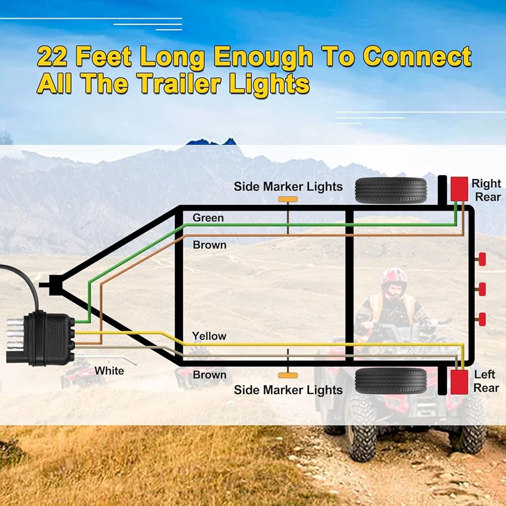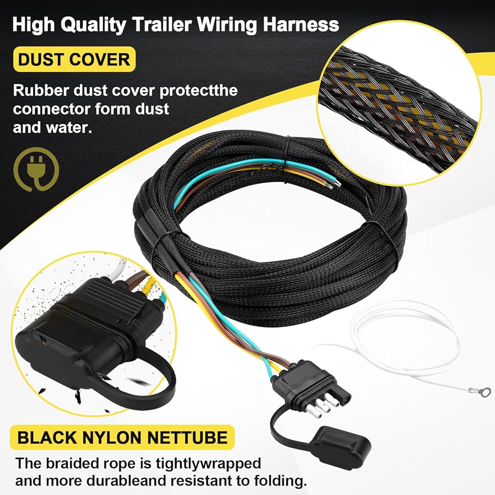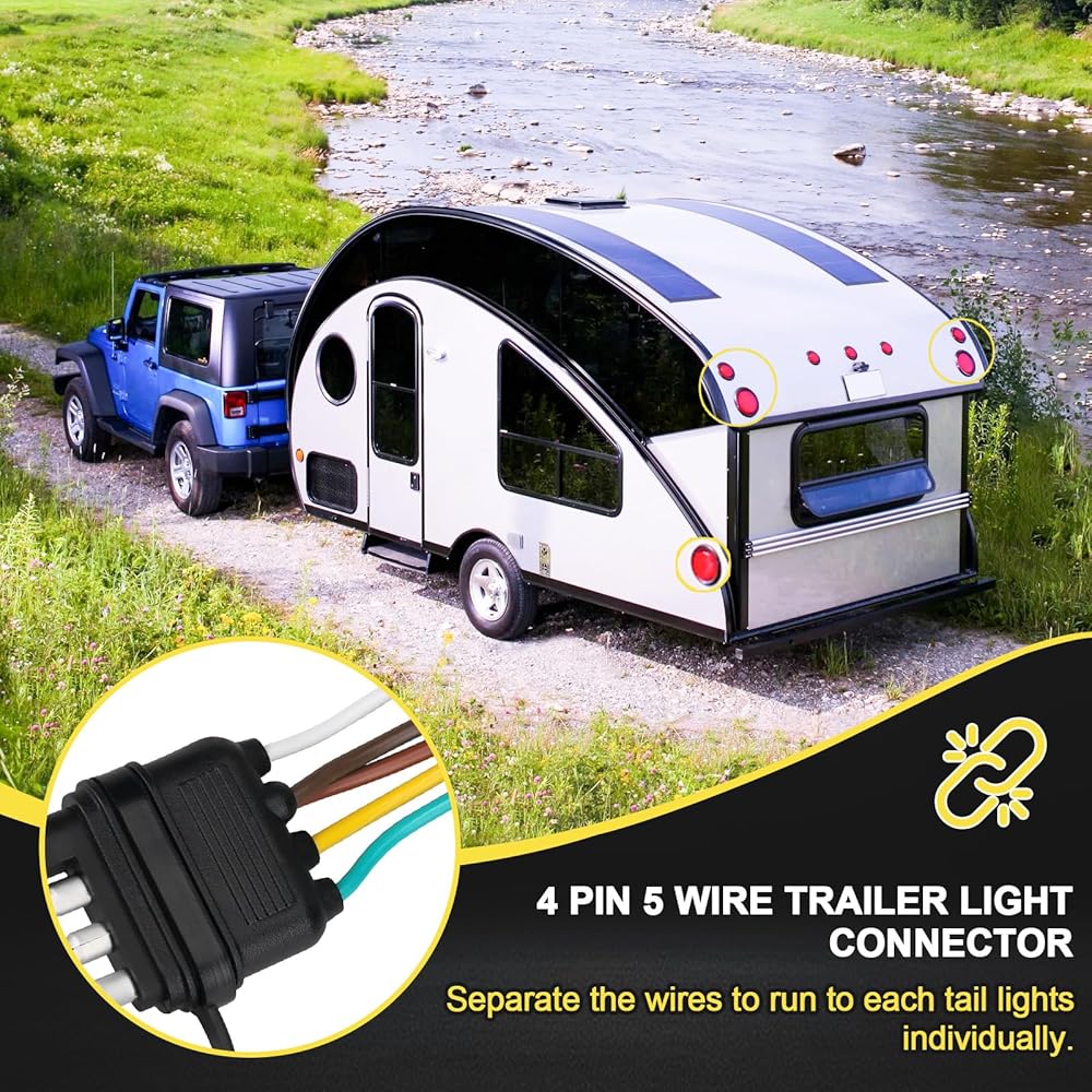 مجموعة أسلاك مقطورة ذات 4 دبابيس و5 أسلاك، مجموعة أسلاك إضاءة للمقطورة بطول 22 قدمًا مع غطاء واقٍ من النايلون الأسود لتوصيل مصابيح الذيل وأضواء الفرامل وإشارات الانعطاف
