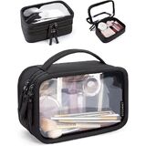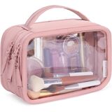 مقاومة للماء مع طبقات معززة: مصنوعة من مادة PVC السميكة والشفافة، حقيبة أدوات الزينة هذه متينة وسهلة التنظيف. تساعد الدرزات المعززة، التي تتميز ببطانة ناعمة ومريحة، على منع التمزق (يرجى ملاحظة أن السحاب ليس مقاومًا للماء)