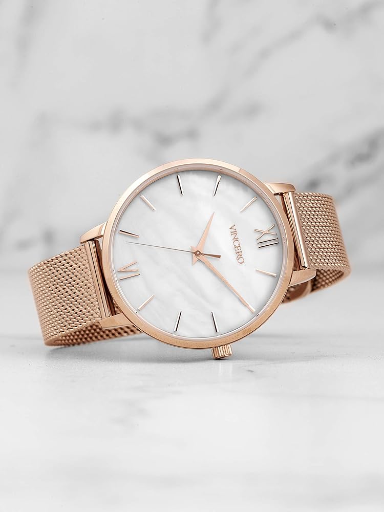 ساعة يد Vincero Luxury Eros للسيدات مع سوار جلدي - ساعة تناظرية 38 ملم - حركة كوارتز يابانية... (شبكة وردية + لؤلؤة بيضاء)