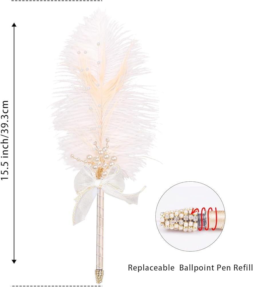 قلم حبر جاف من ريش النعام من فيجيف، أقلام زفاف قابلة لإعادة الملء لتوقيع كتاب الضيوف، أقلام فاخرة فاخرة من نيكا لعشرينيات القرن العشرين من إكسسوارات غاتسبي الرائعة لوازم الحفلات باللون الأبيض