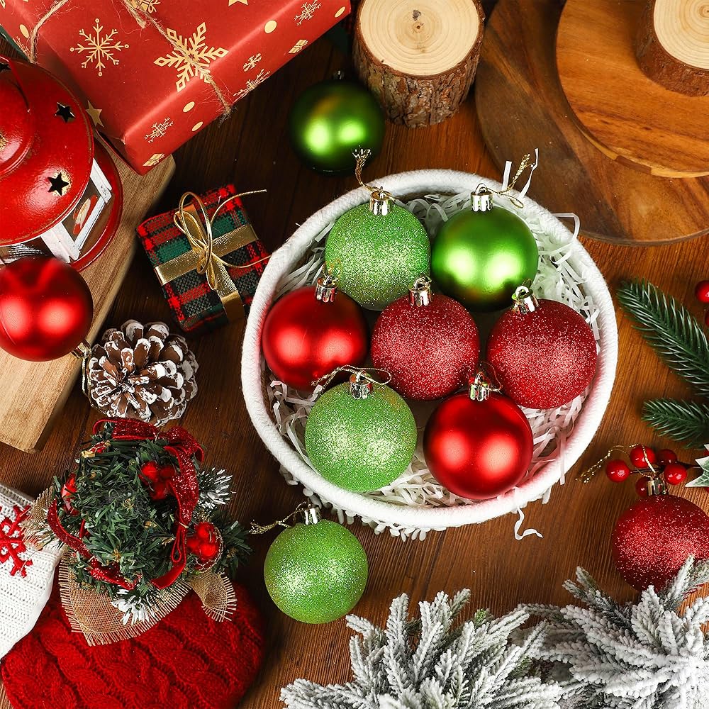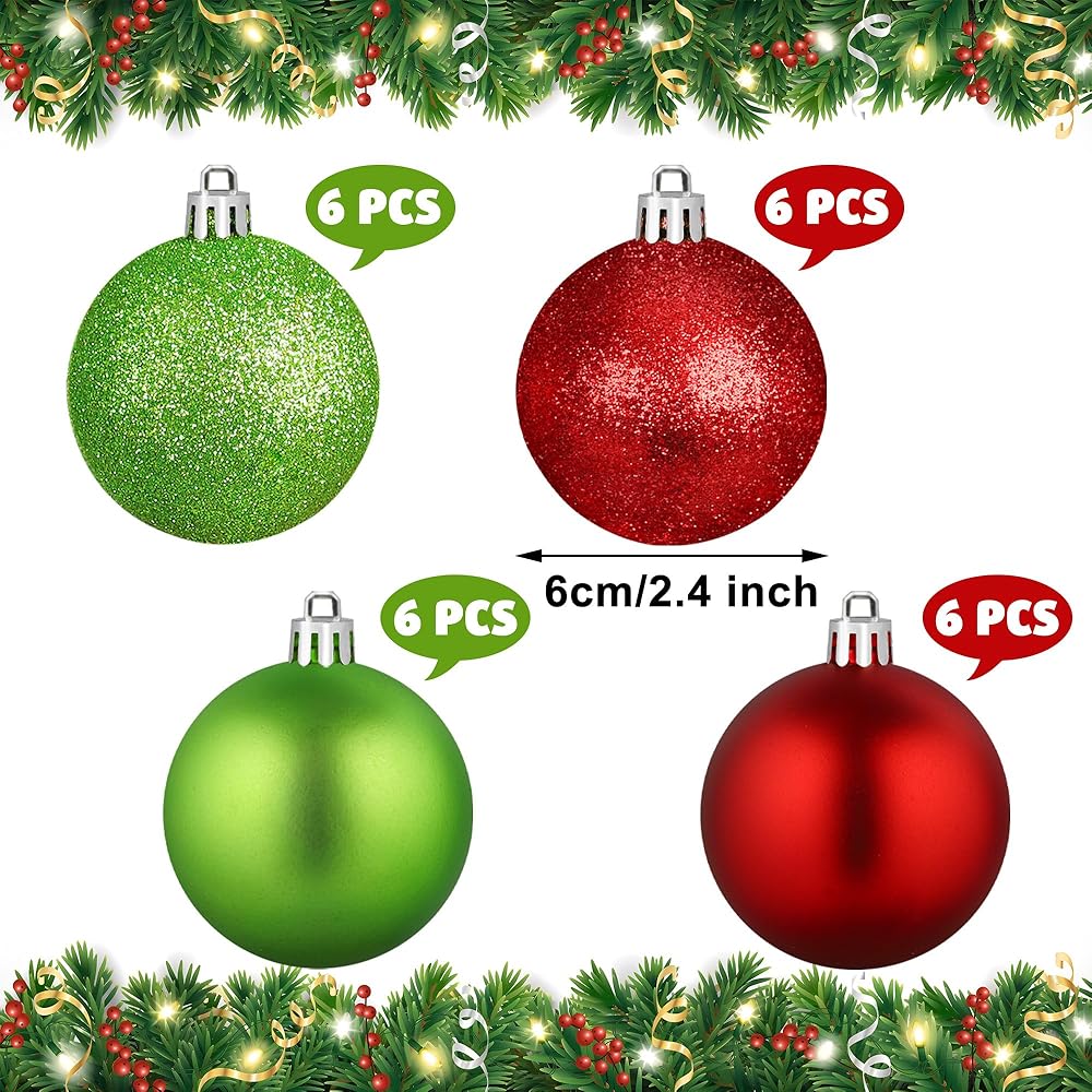 24 جهاز كمبيوتر شخصى عيد الميلاد الأحمر الأخضر الكرة الحلي 2.4 بوصة عيد الميلاد شاتيربروف شجرة الزينة التألق البلاستيك عيد الميلاد شنقا الكرة الحلي كرات لشجرة عيد الميلاد عطلة حزب ديكور المنزل