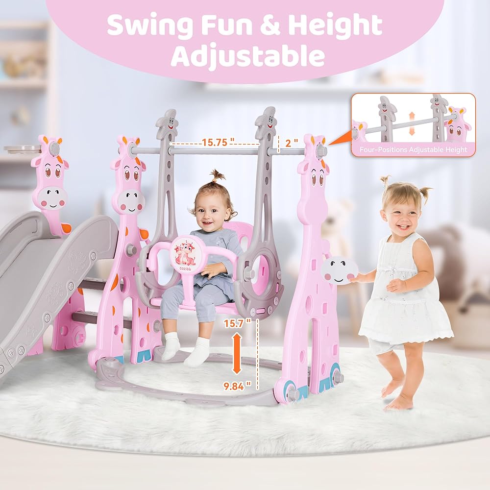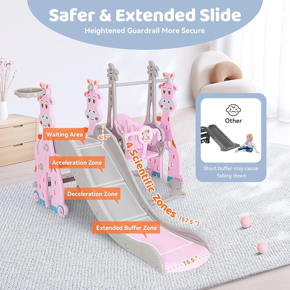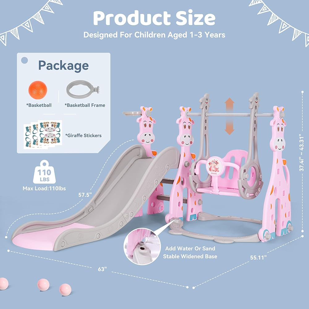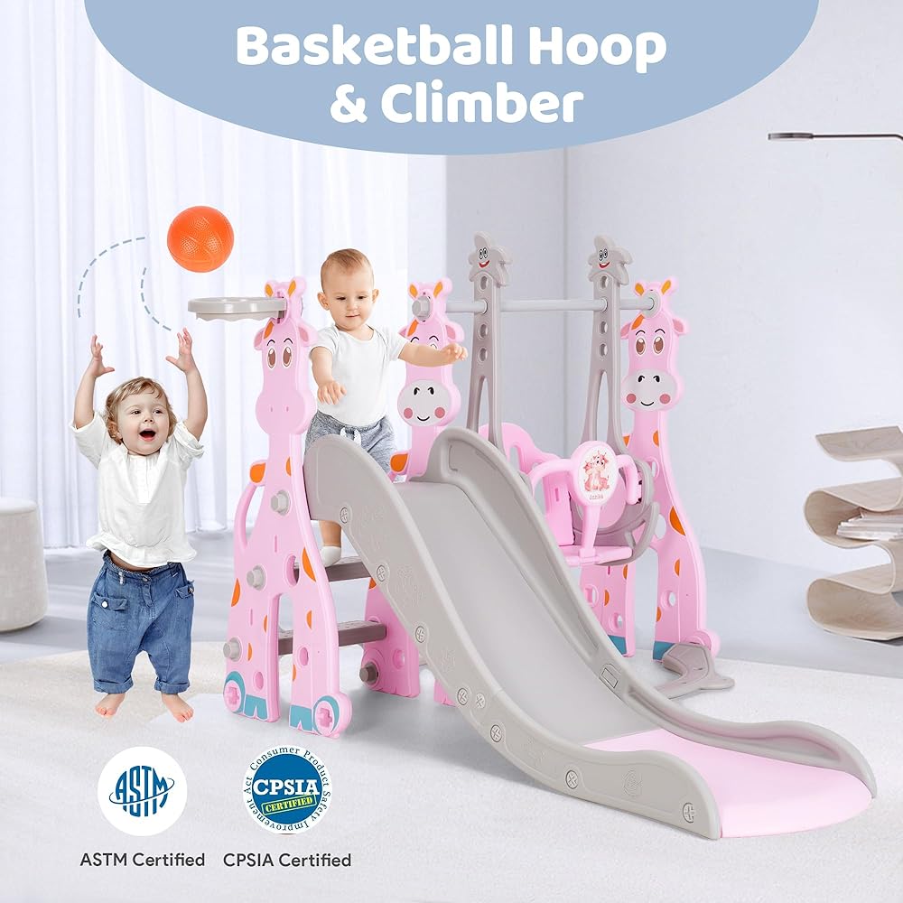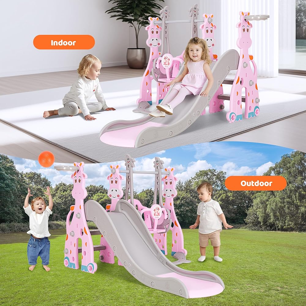 • ✨【4-in-1 Toddler Slide Set】This giraffe toddler play structure comes with a smooth slide, sturdy swing, climbing frame, and basketball hoop (a free small basketball). It's perfect for creating an indoor or outdoor playground for kids! Your kids will enjoy their childhood while promoting healthy physical development!