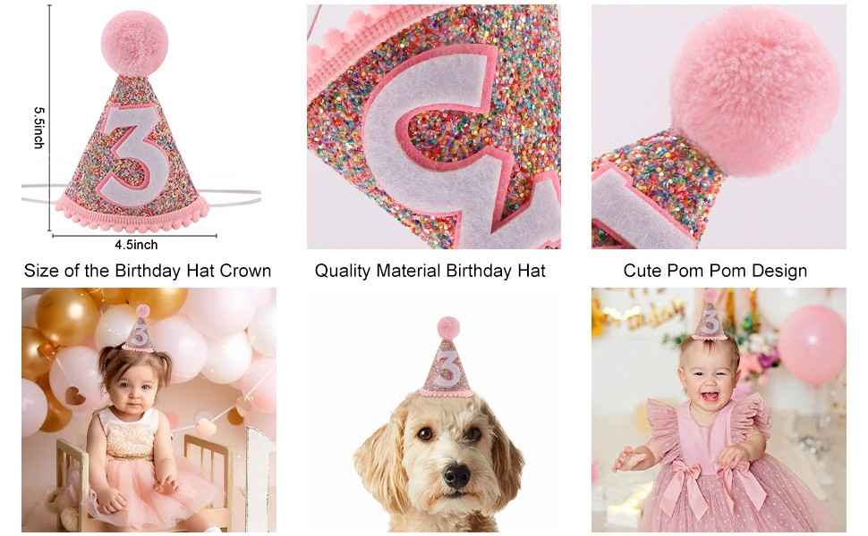 🎁مواد مختارة - قبعة حفلات أعياد الميلاد هذه مصنوعة من اللباد اللامع المكتنز، والذي يتميز بزخرفة وردية اللون، وجزء علوي من الكرة الوردية والرقم. سطح قبعة عيد الميلاد مصفح لجعل المادة الكلية أكثر سمكًا وأكثر نسيجًا.