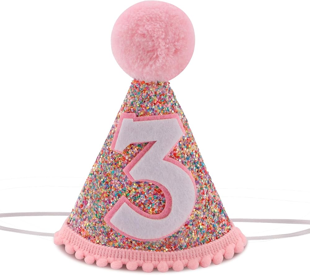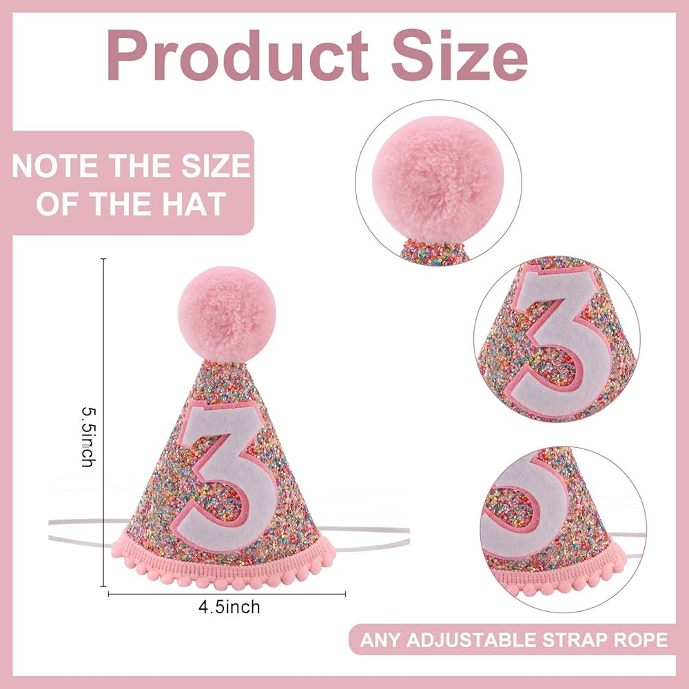 قبعة مخروطية لعيد الميلاد الثالث، قبعة عيد ميلاد بيضاء لامعة مع قبعة قوس قزح لعيد الميلاد باللون الوردي لحفلة عيد الميلاد، قبعة دعائم صور عيد ميلاد لامعة للأولاد والبنات، قبعة قوس قزح الباستيل