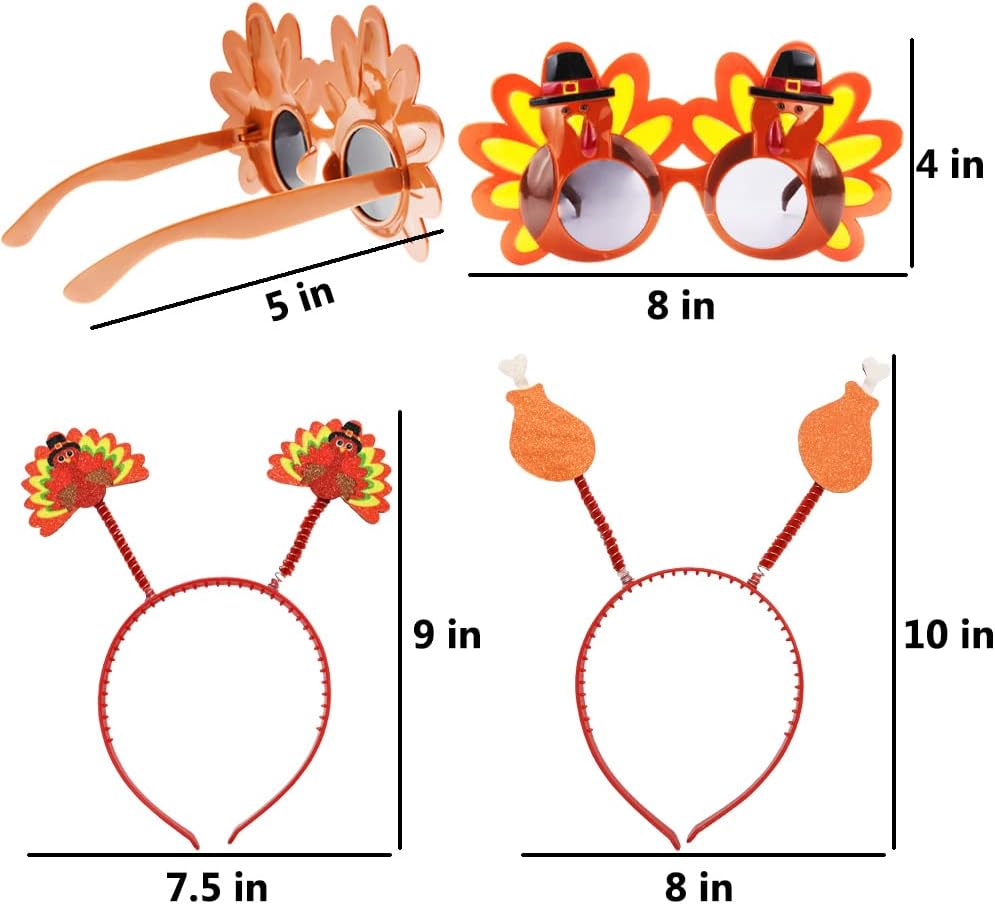 🍗 Thanksgiving Party Supplies: Our turkey headband and Sunglasses are nice for Thanksgiving parties, fall theme party, cosplay party, birthday party and so on. For any Thanksgiving turkey costume or wardrobe, these merry accessories make great fun for anyone who loves to celebrate the season in style!
