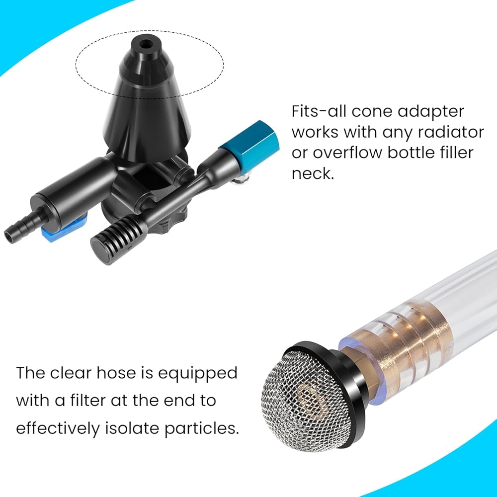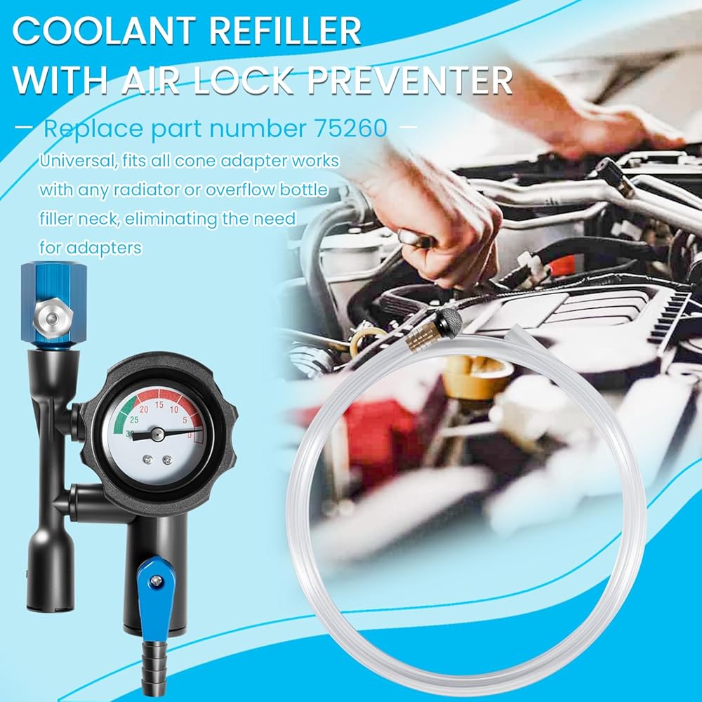75260 Coolant Fill Kit Fits All Cone Adapter Coolant Refiller Kit with Air Lock Preventer Vacuum Leak Tester