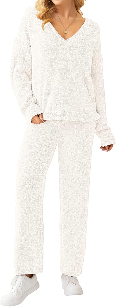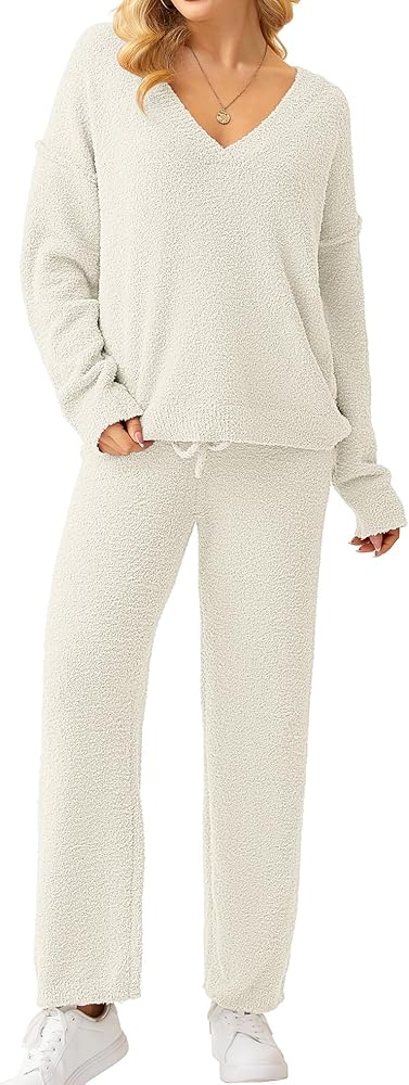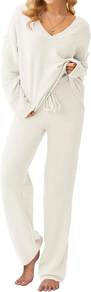 المميزات: تتميز ملابس Pjs النسائية الصوفية بمقاس فضفاض، وأكمام طويلة، ورقبة على شكل حرف V، وسروال بيجامة قطيفة مع رباط قابل للتعديل. توفر مجموعة البيجامة Fuzzy مزيجًا من الأناقة والسحر المريح.