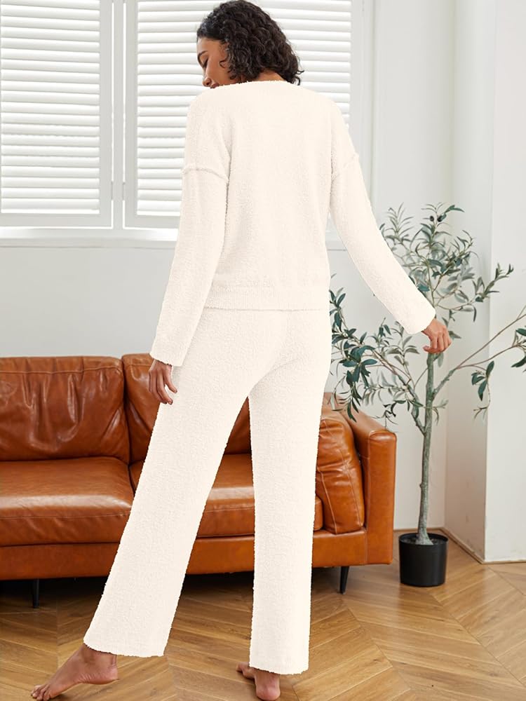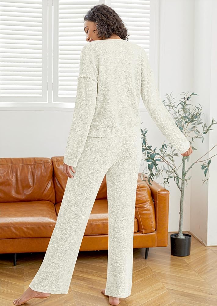 المادة: مجموعة البيجامات الصوفية النسائية مصنوعة من نسيج فائق النعومة، مما يوفر تجربة ارتداء لا مثيل لها خلال الربيع والخريف والشتاء. خامة مجموعة البيجامات المريحة هذه ناعمة ومسامية ودافئة، ومثالية للاسترخاء في المنزل أو للارتداء اليومي الكاجوال.