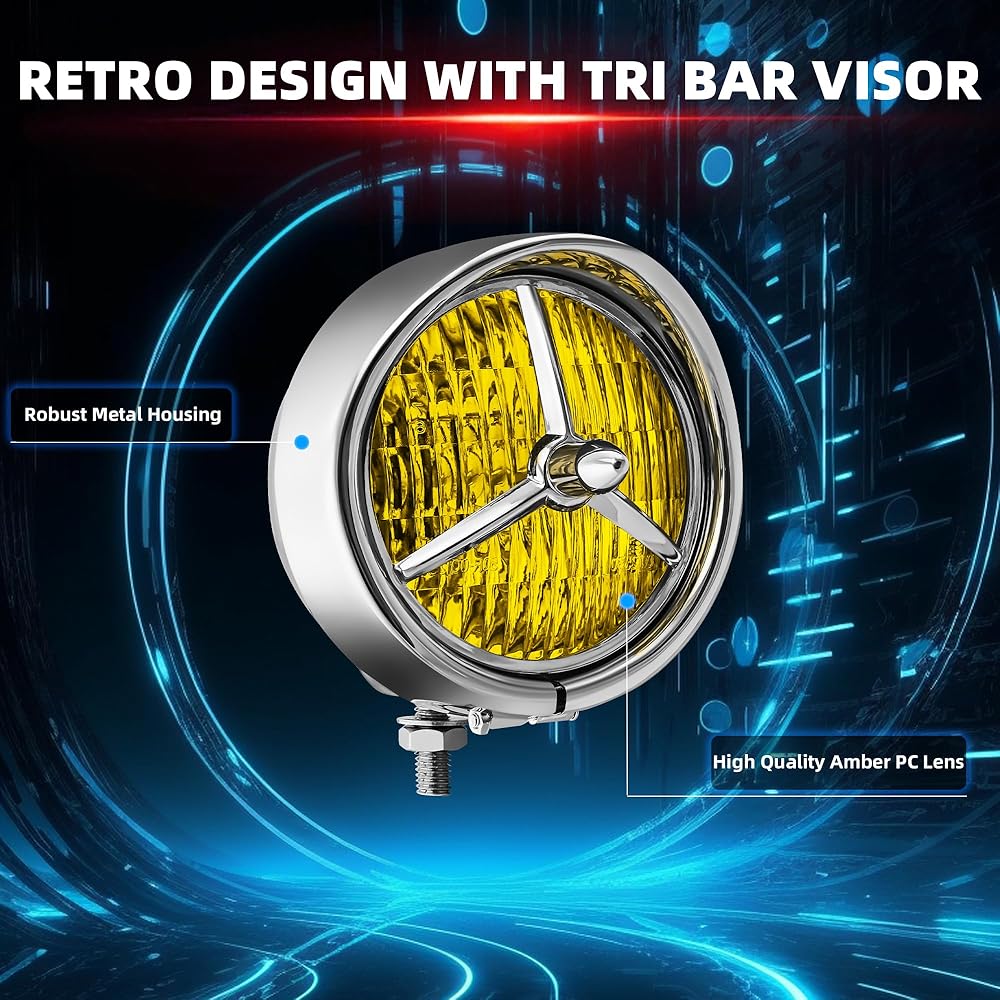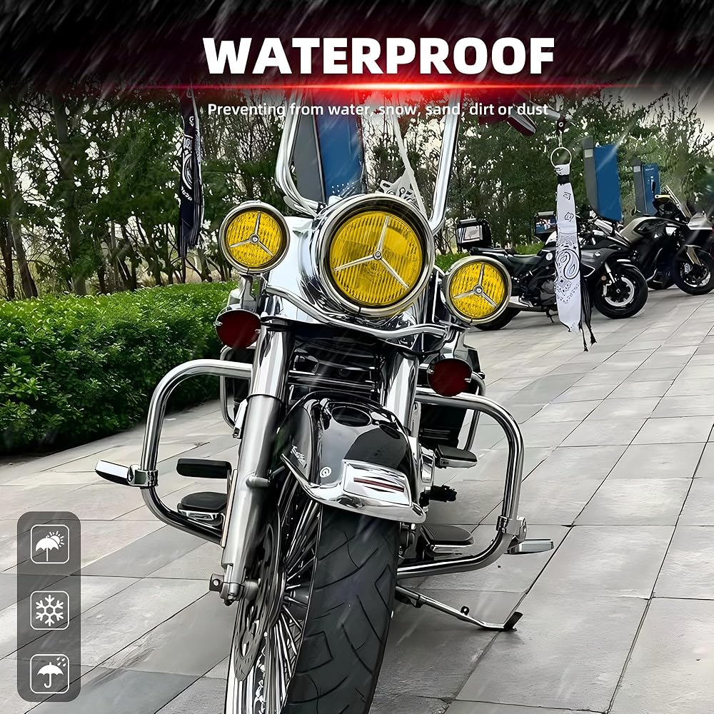 Fitment: Universal fit for most motorcycles with 4.5 inch auxiliary lights, such as Harley Kawasaki Honda Yamaha Suzuki Chopper Cafe Racer Bobber Cruiser, etc. Package Includes: 2x 4.5” LED motorcycle fog lights + Housing Bucket with Tri Bar Visor