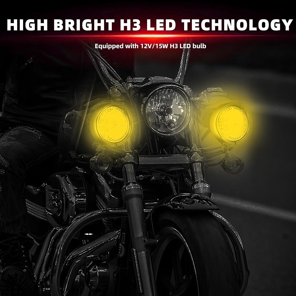 Nice Exterior: Chromed aluminum housing with tri bar visor & Clear PC lens, enhance the look of your motorcycle with these custom fog lights. The H3 LED motorcycle passing lamps are water and dust resistant and suitable for all weather conditions