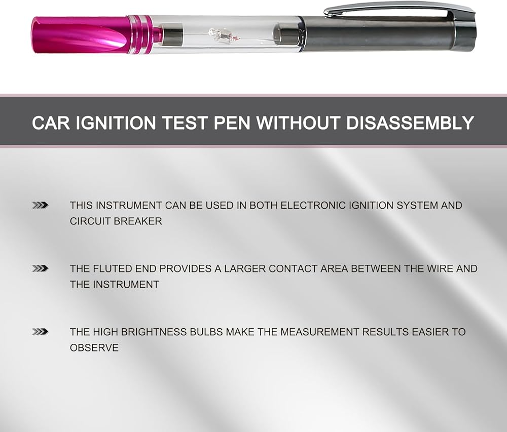 • How to Operate: With the engine started, place the grooved end of the test pen on the spark plug wire. If the light bulb flashes, it means the spark plug wire is transmitting the spark plug signal.