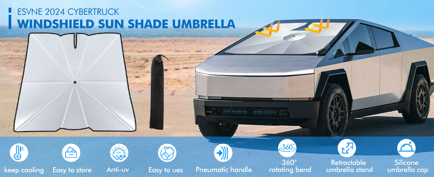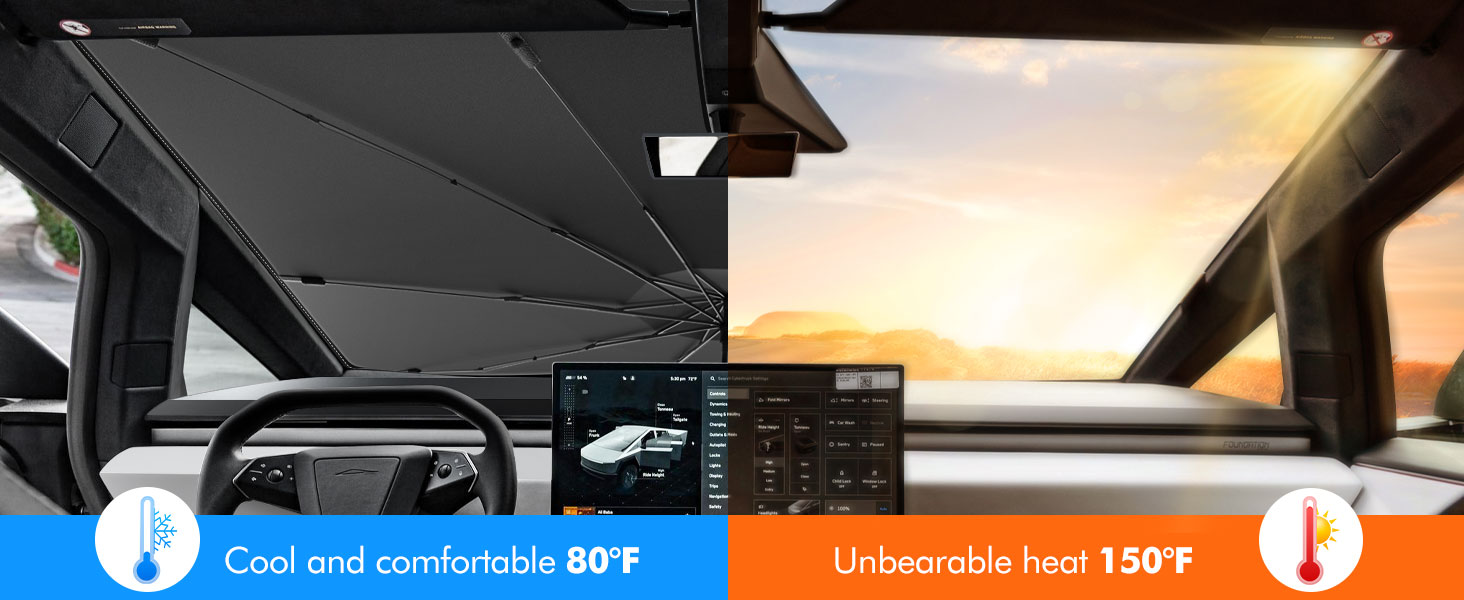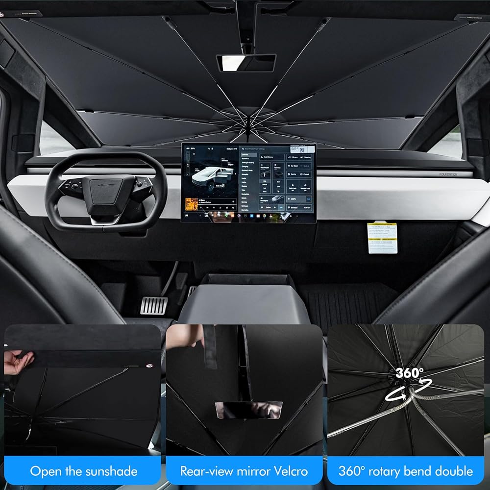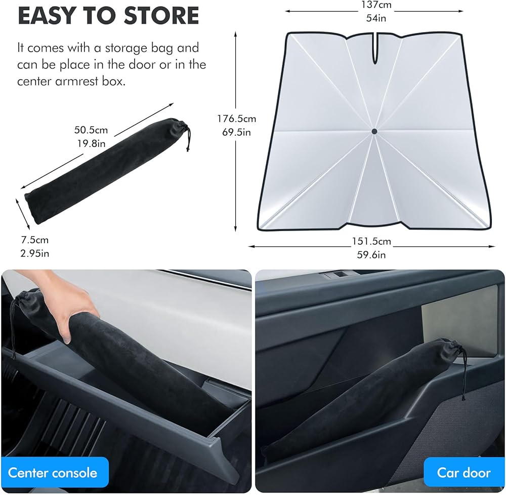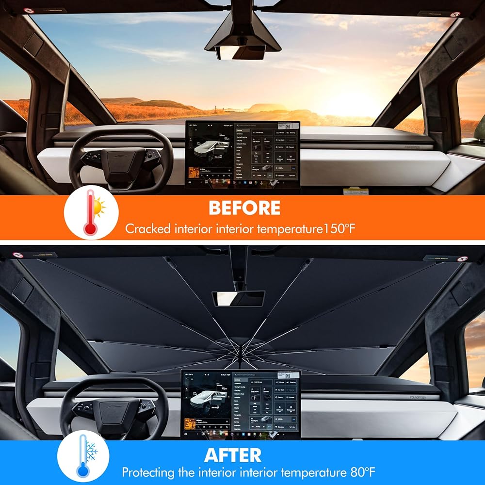 【ملاءمة مخصصة لسيارة Tesla Cybertruck】- مصممة خصيصًا لسيارة Tesla Cybertruck 2023 2024، مما يوفر تغطية كاملة للزجاج الأمامي لتوفير أقصى قدر من الحماية من الشمس والأشعة فوق البنفسجية والخصوصية.