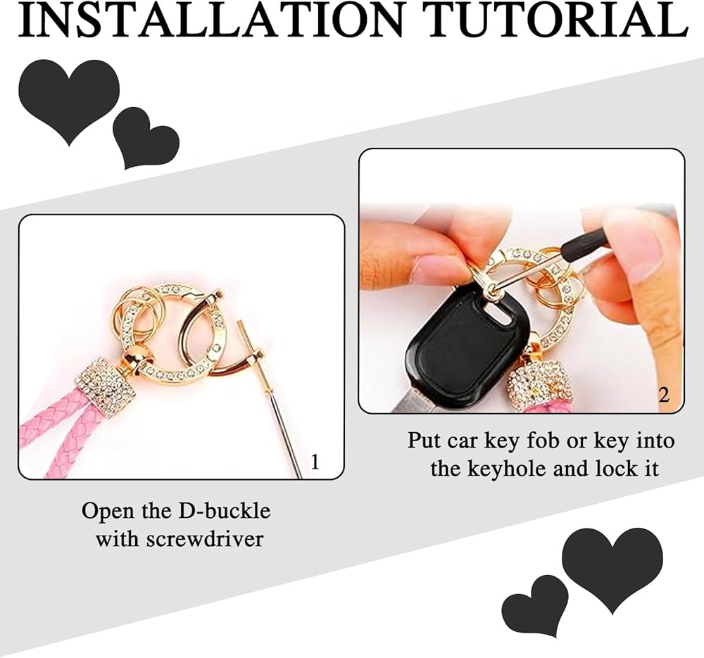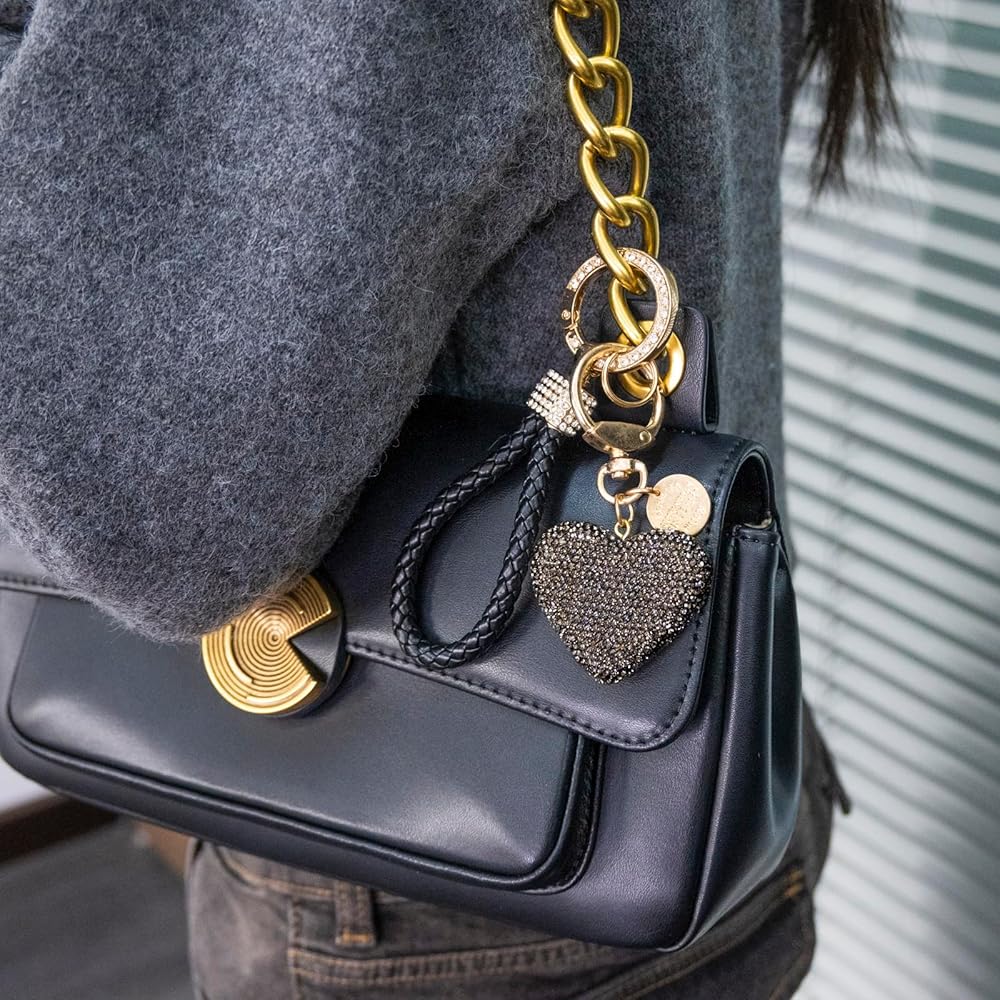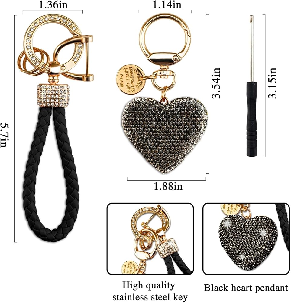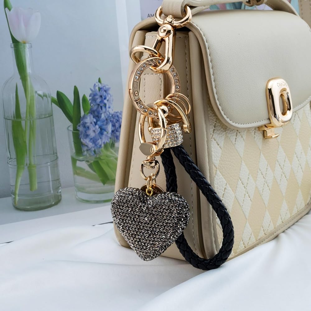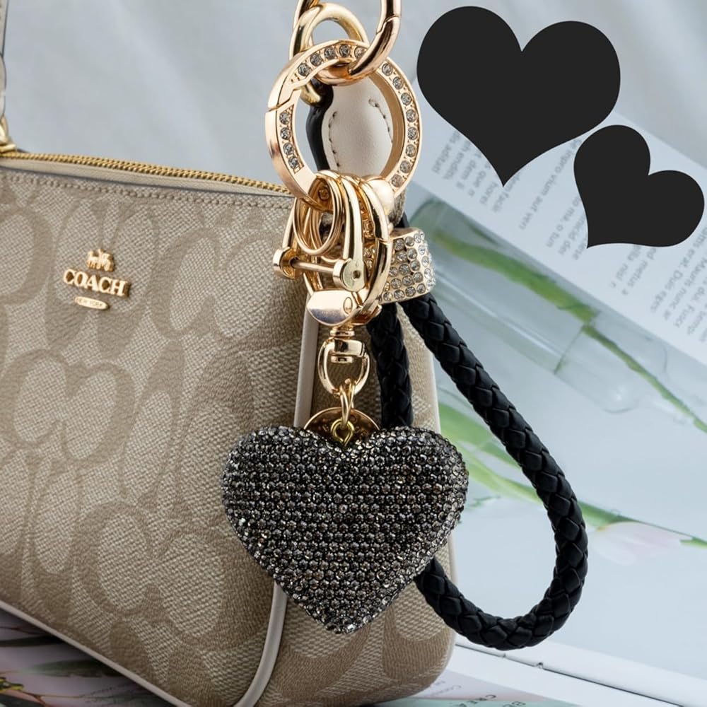 سلاسل المفاتيح اللامعة للنساء - سلاسل المفاتيح المصنوعة من حجر الراين الكريستالي على شكل قلب مصنوعة من أحجار الراين والجلد المنسوج وسلاسل المفاتيح المعدنية المصنوعة من السبائك. إنها أنيقة وجميلة وبراقة! سوف تحبه!